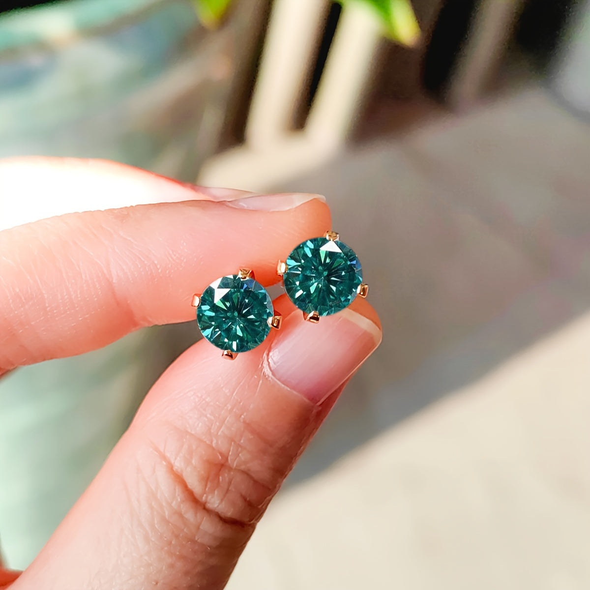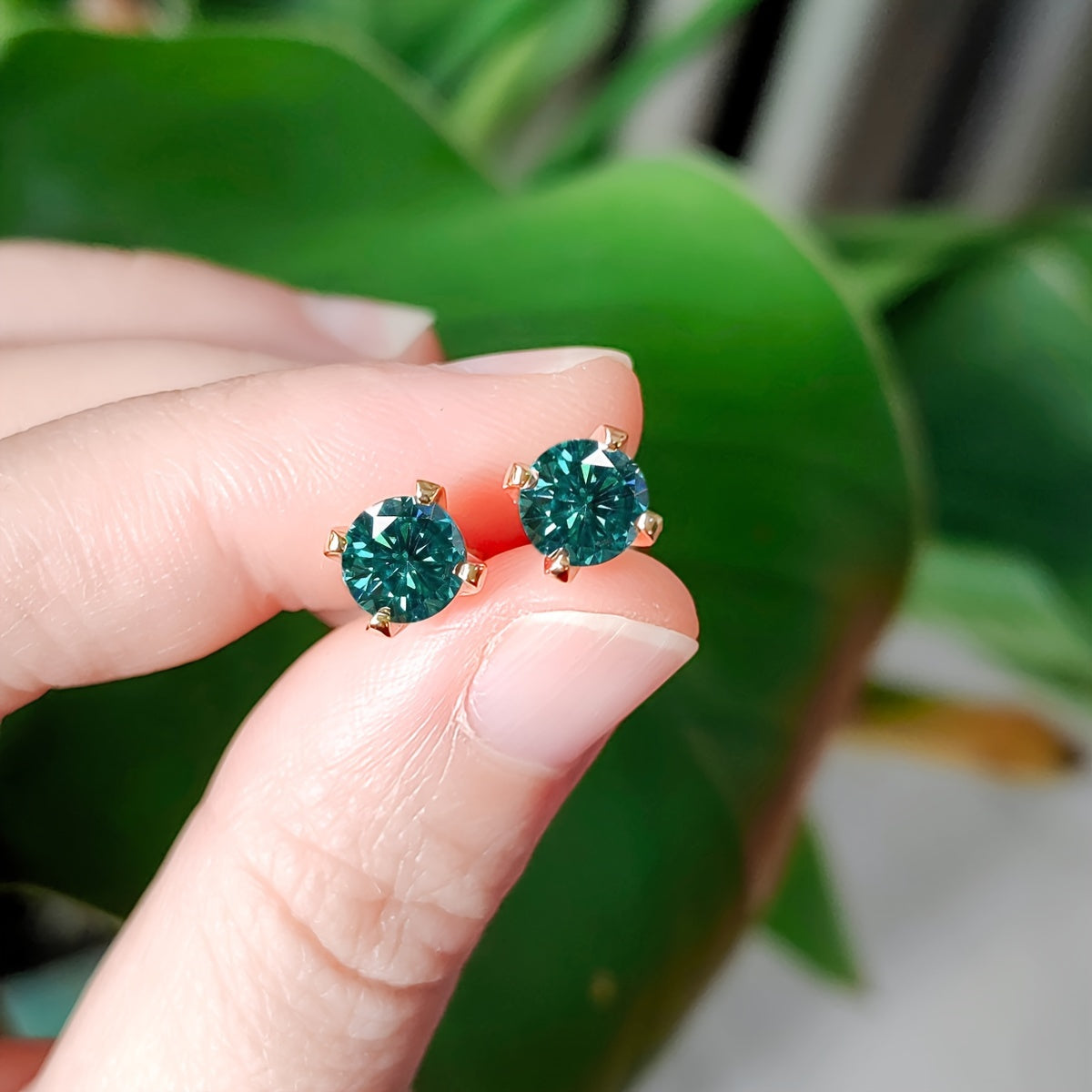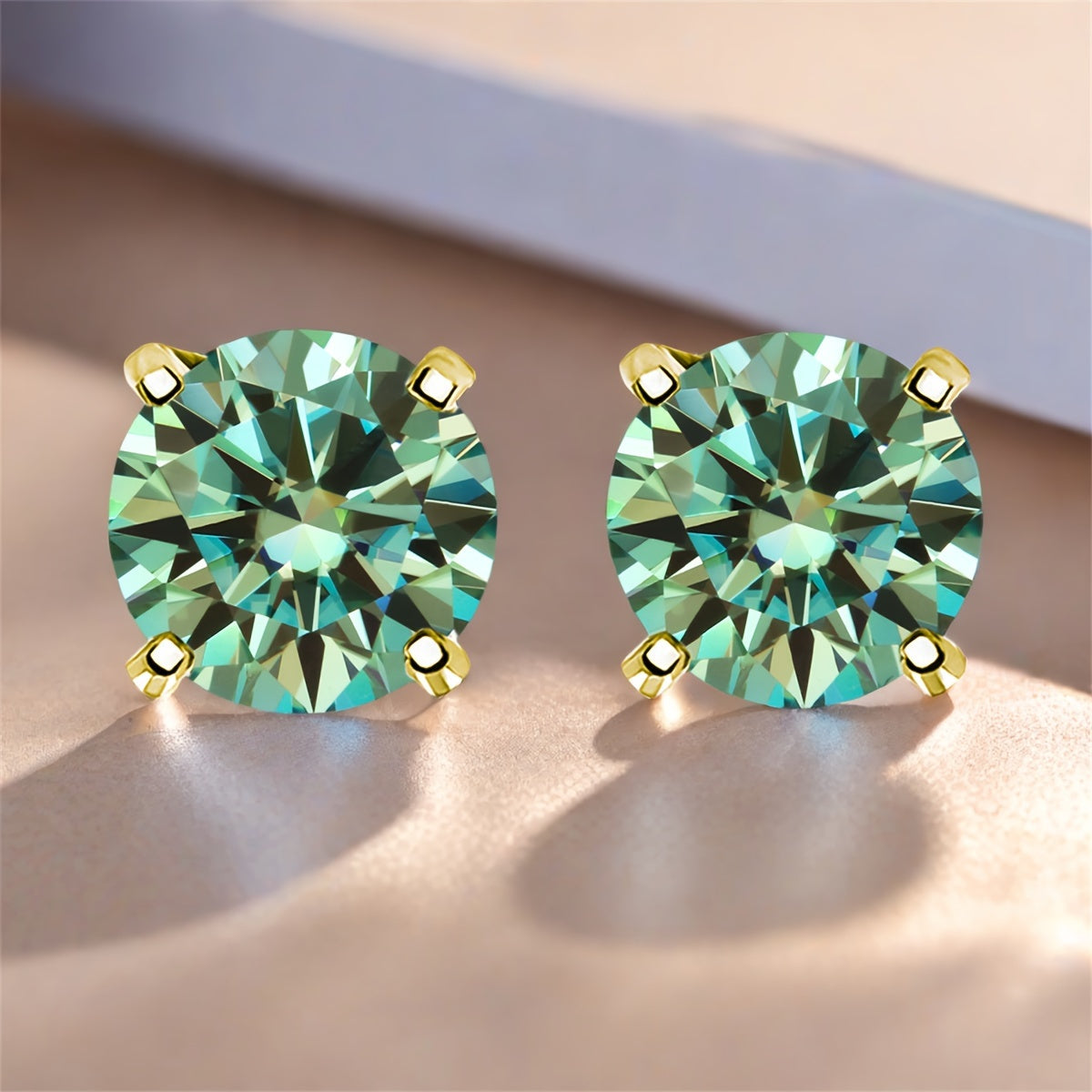 These stylish earrings are made with synthetic moissanite stones and set in S925 silver. They feature a beautiful green, yellow, and silvery color combination.