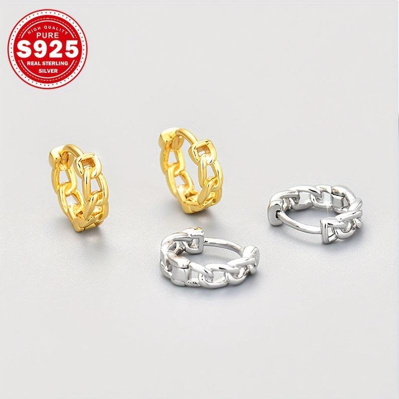 These S925 sterling silver chain link earrings are lightweight at 2.81g, making them perfect for daily wear or special occasions. They are hypoallergenic, ideal for those with sensitive skin. A great gift for women to wear to parties.