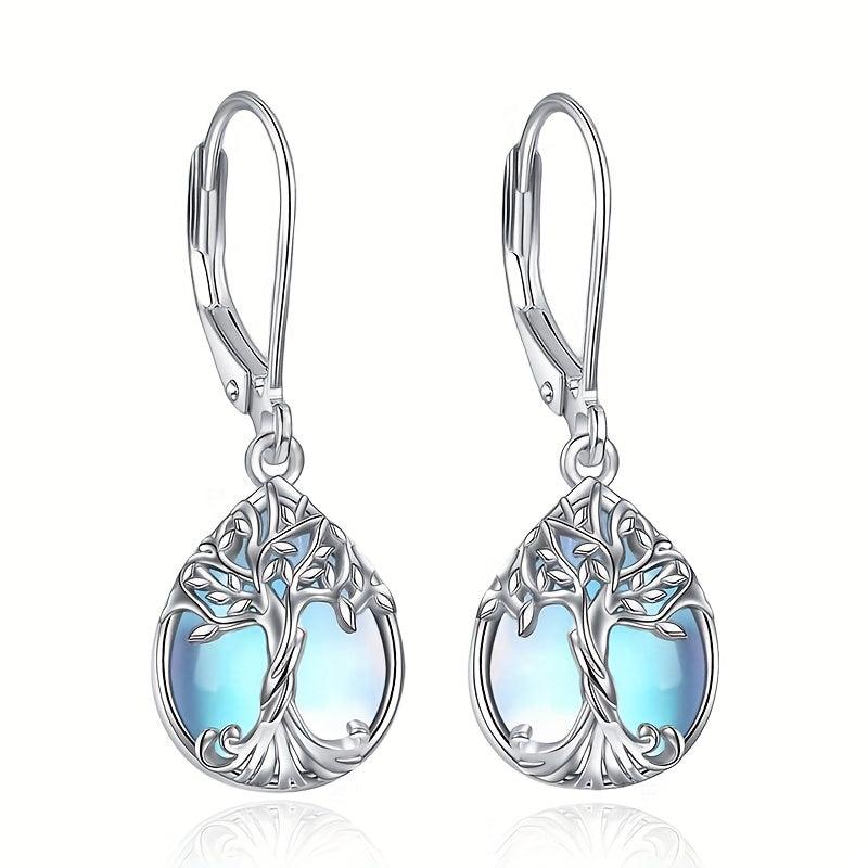 These stunning earrings feature moonstone teardrops with a Tree of Life pendant design. Made of S925 sterling silver, they make a perfect jewelry gift for women.