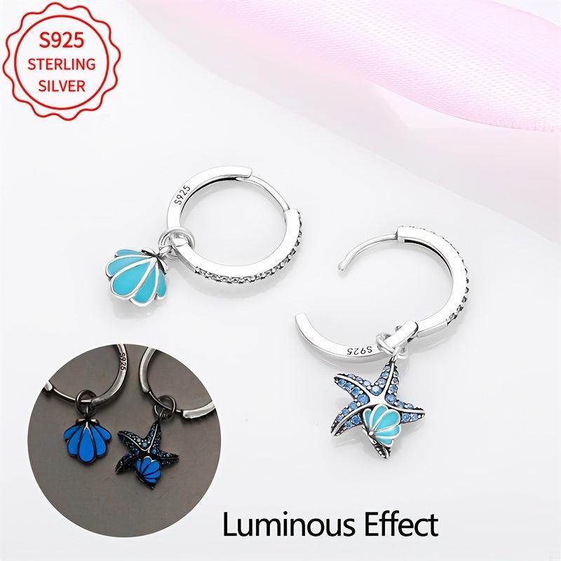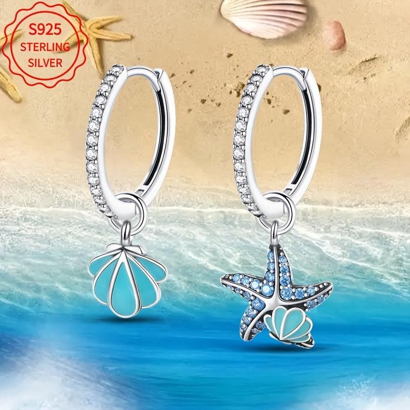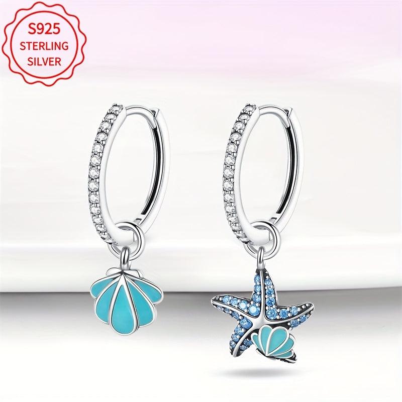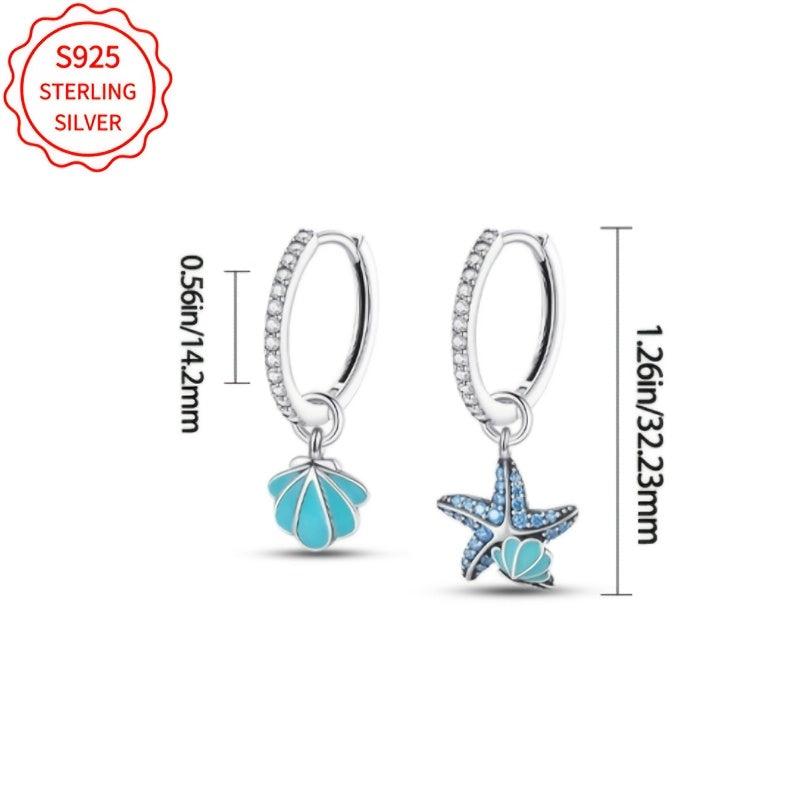 Add a touch of the ocean with these stunning S925 pure silvery earrings shaped like starfish and shells. Featuring a luminous effect, these hypoallergenic earrings are perfect for any occasion.