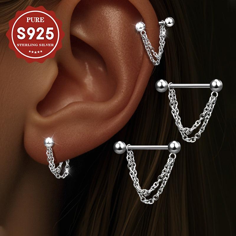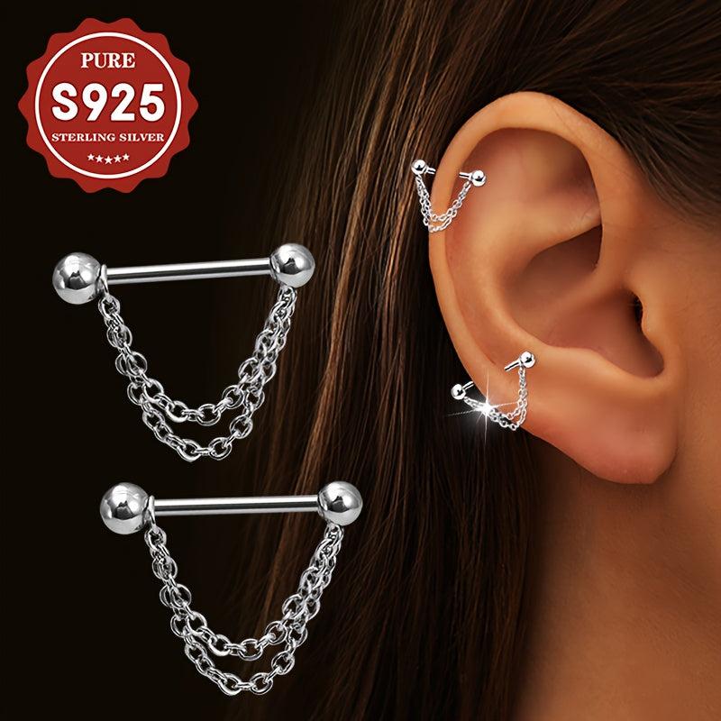 Elegant S925 silver earrings featuring round bead chain studs. Perfect for daily wear or gifting, suitable for all skin types. Hypoallergenic design ensures comfort and style.