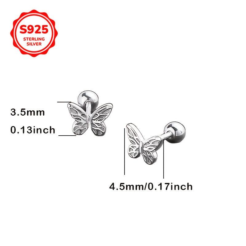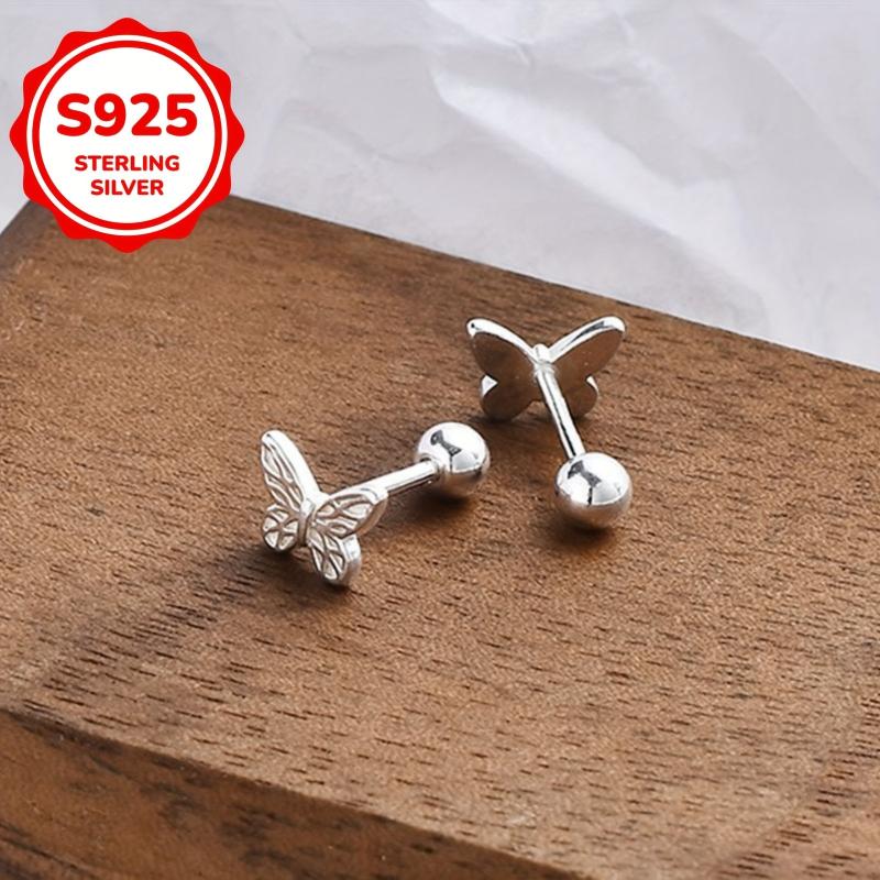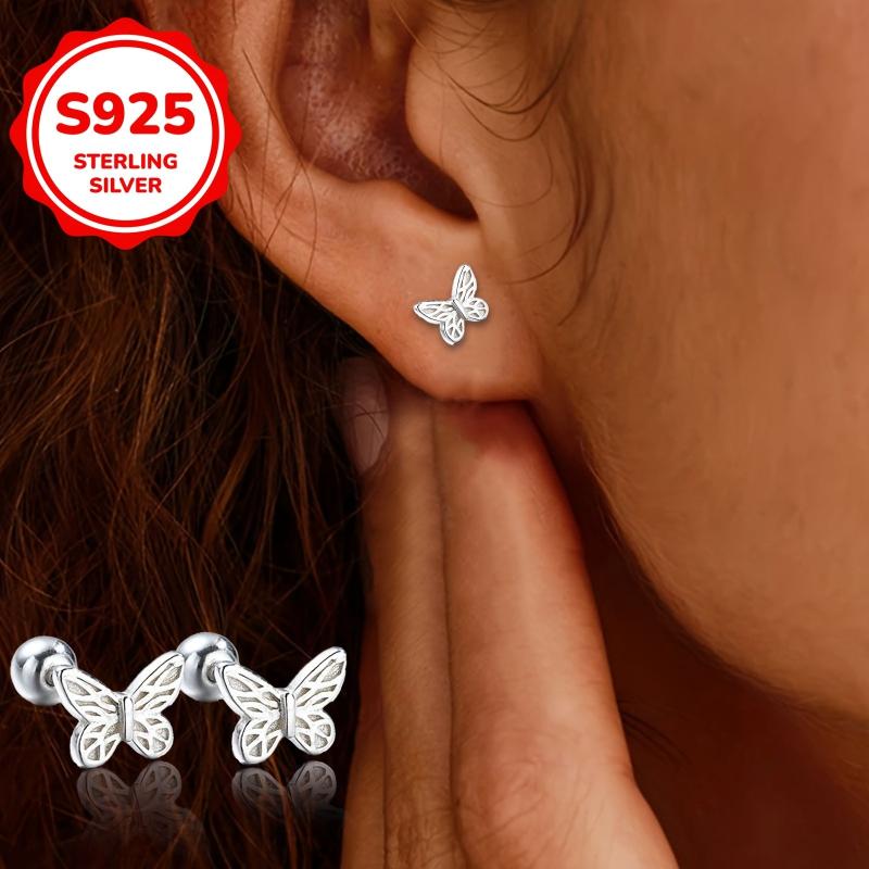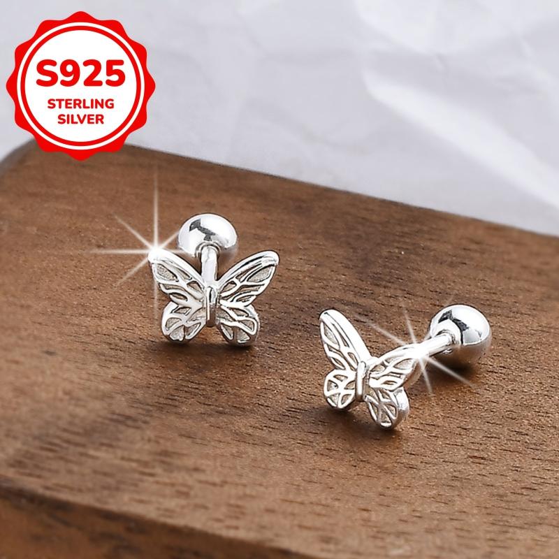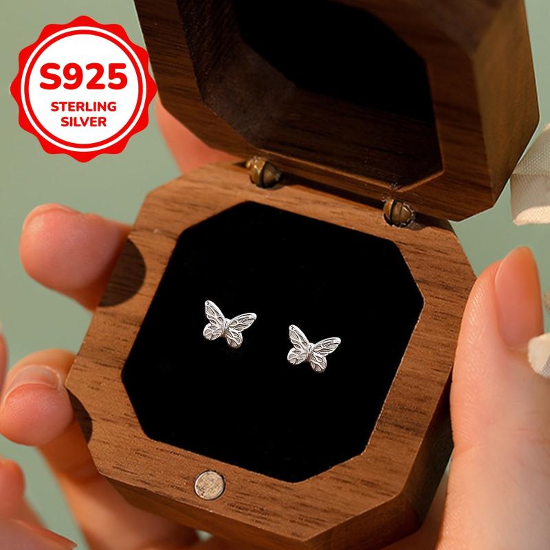 Elegant pair of S925 silver patterned butterfly earrings suitable for earlobe piercing. Ideal for daily wear during Mother's Day, Valentine's Day, and graduation season.