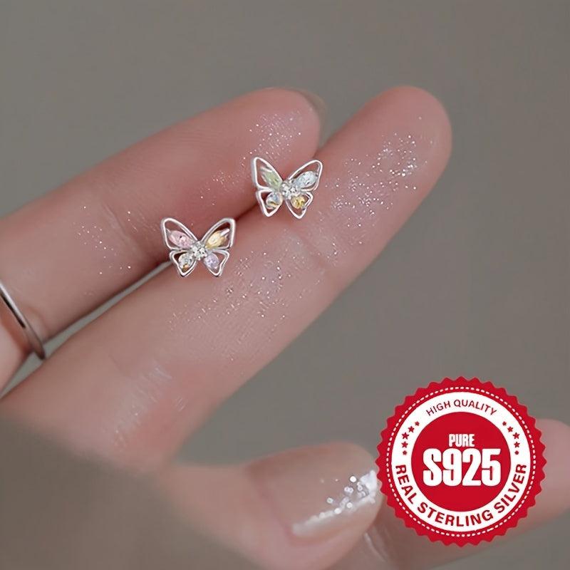 Adorn your ears with these sweet and colorful butterfly earrings made of S925 silver. A perfect gift for women, these hypoallergenic earrings are beautiful accessories that add a touch of charm to any outfit.