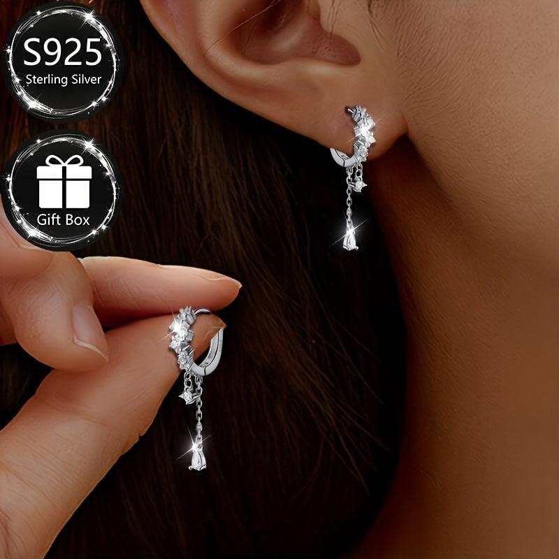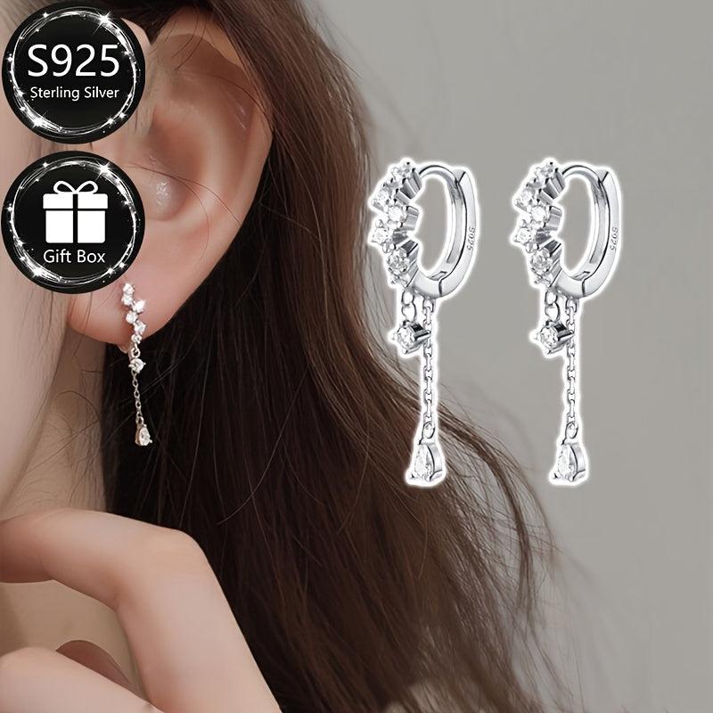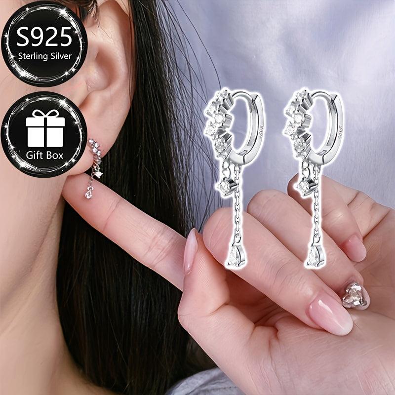 These elegant S925 silver earrings are perfect for weddings and parties. They feature Synthetic Zirconia for added sparkle and are hypoallergenic, making them suitable for all-day wear.