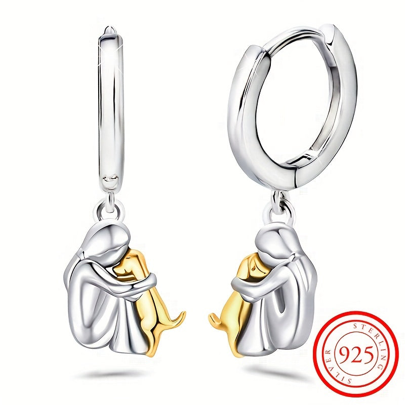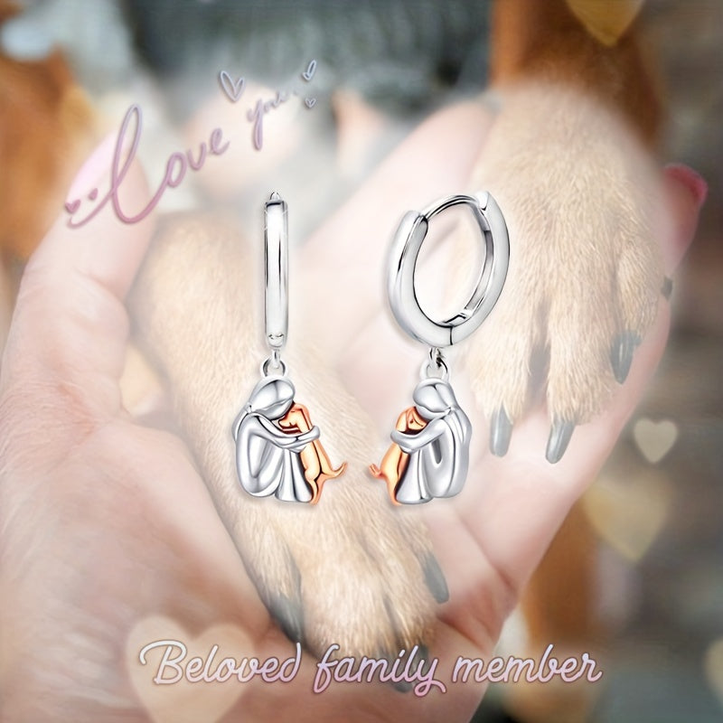 Elegant and hypoallergenic hoop earrings with a cute cartoon dog pendant, perfect for dog lovers. Made of high-quality S925 silver, ideal for everyday wear or special occasions.