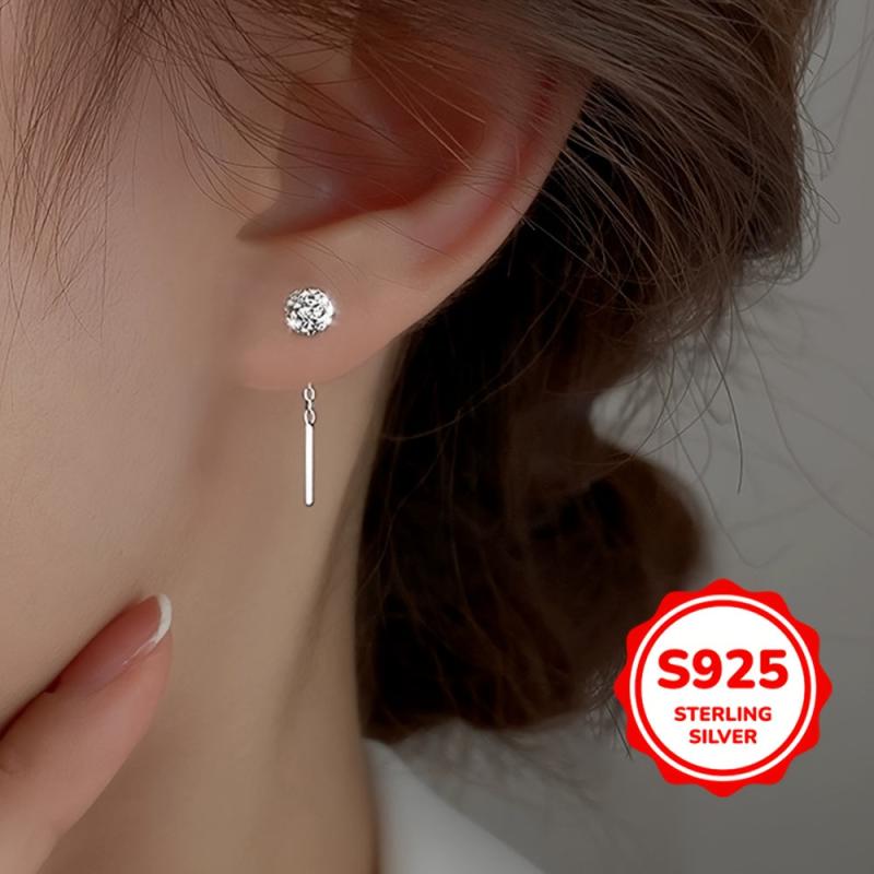 Upgrade your style with these versatile ear cords featuring synthetic zirconia and cubic zirconia in a minimalist design. Made from pure silver for a luxurious look.