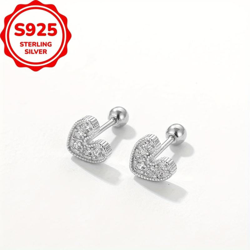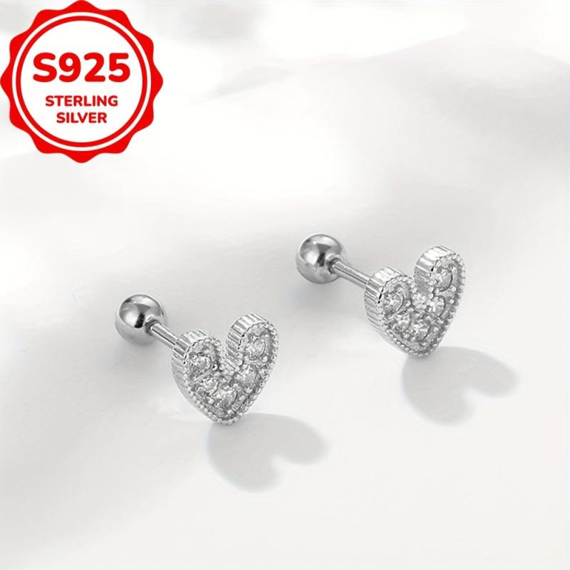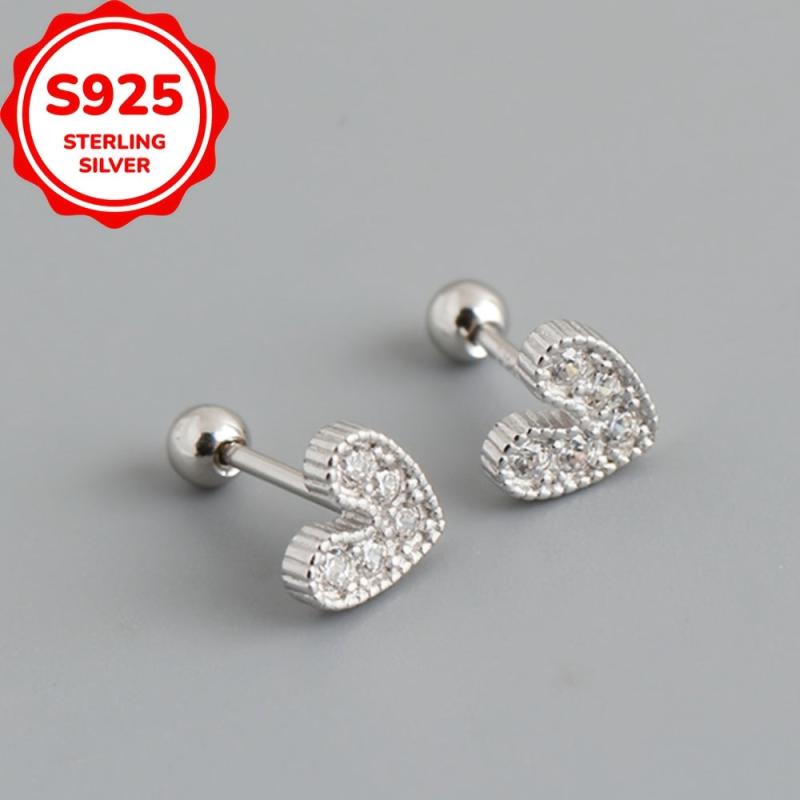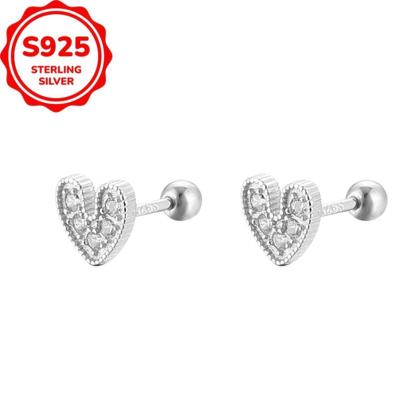 Adorn your ears with these heart-shaped ear studs crafted from S925 sterling silver embellished with CZ stones. Perfect for daily or holiday wear.