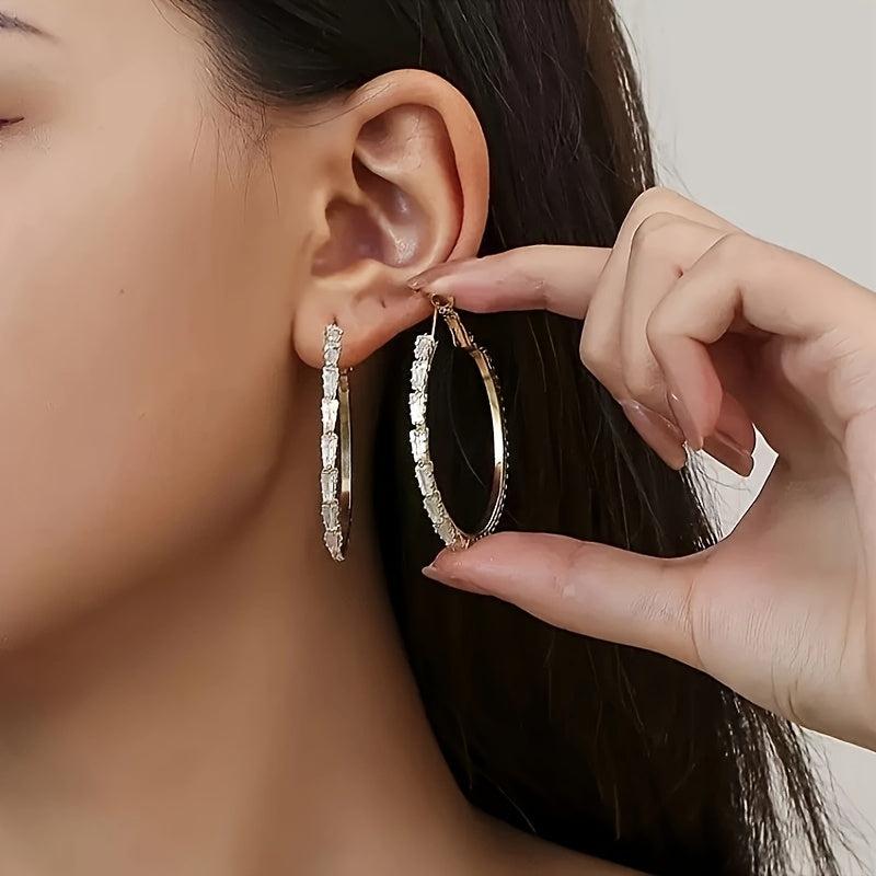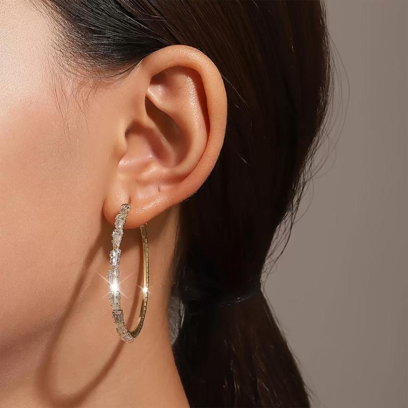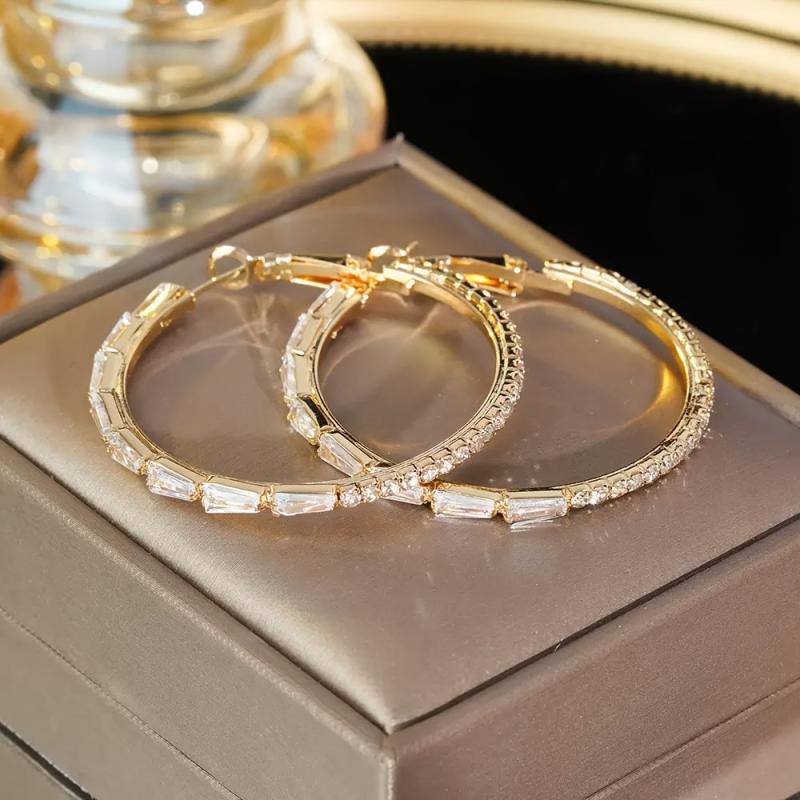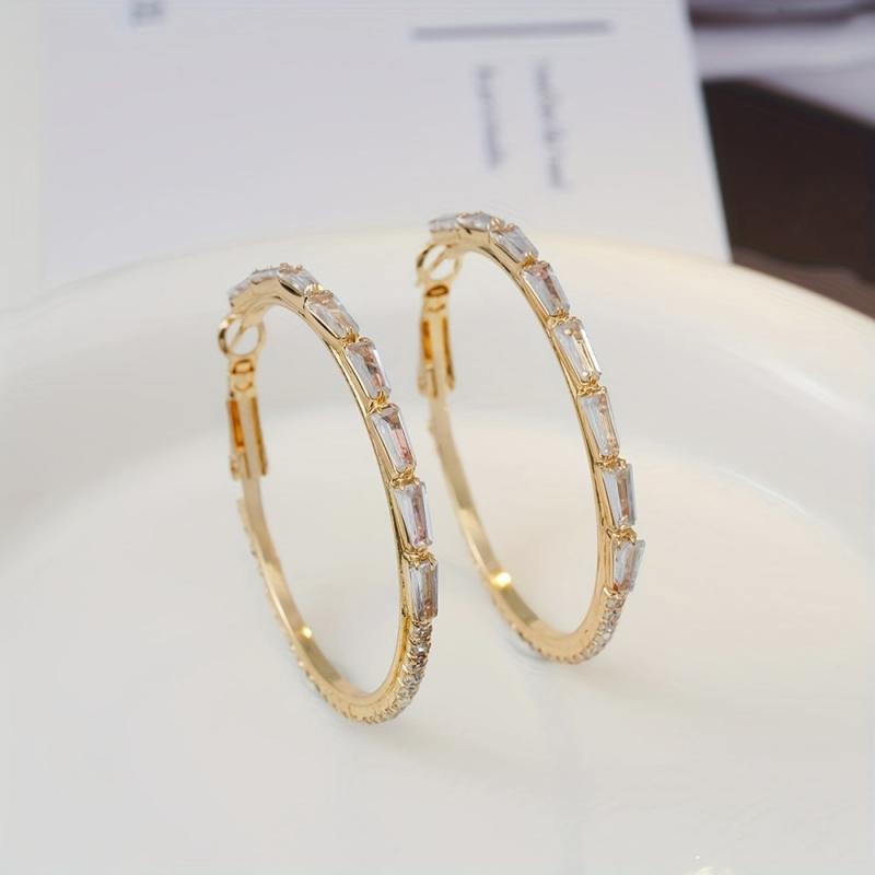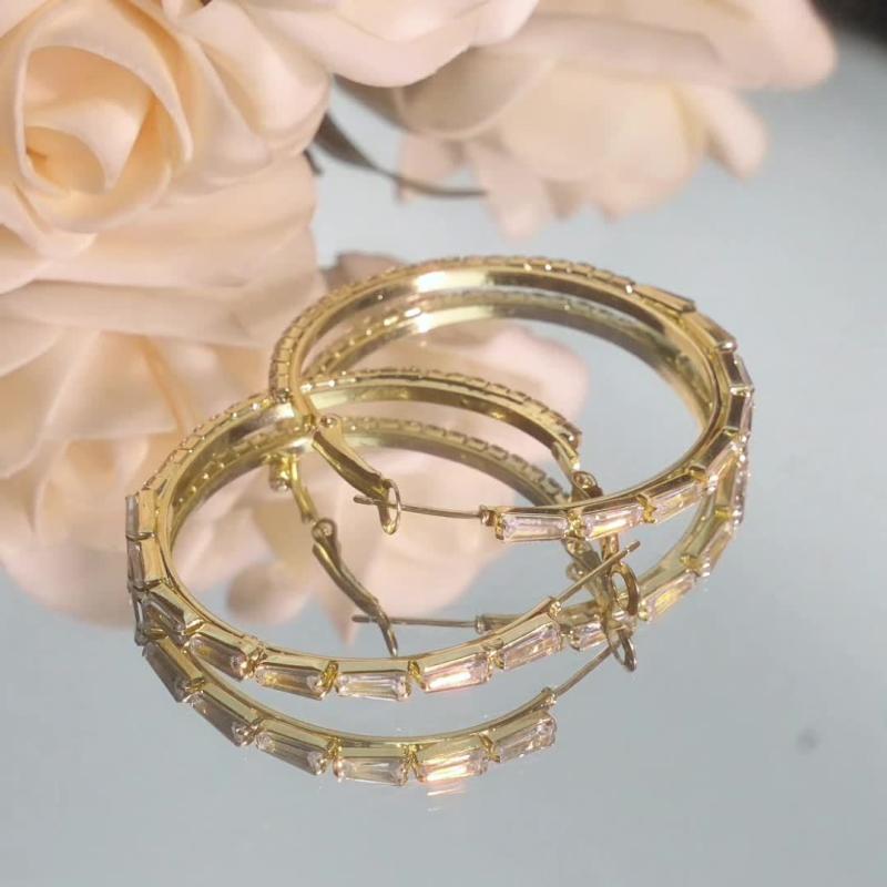 These lightweight hoop earrings feature synthetic zirconia inlays on a stylish golden design. Perfect for adding a touch of personality to your look.
