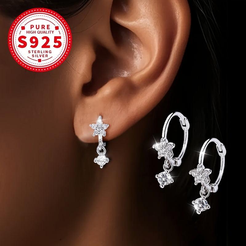 Elevate your style with these stunning S925 silver earrings featuring synthetic cubic zirconia. Perfect for daily wear, parties, and banquets.