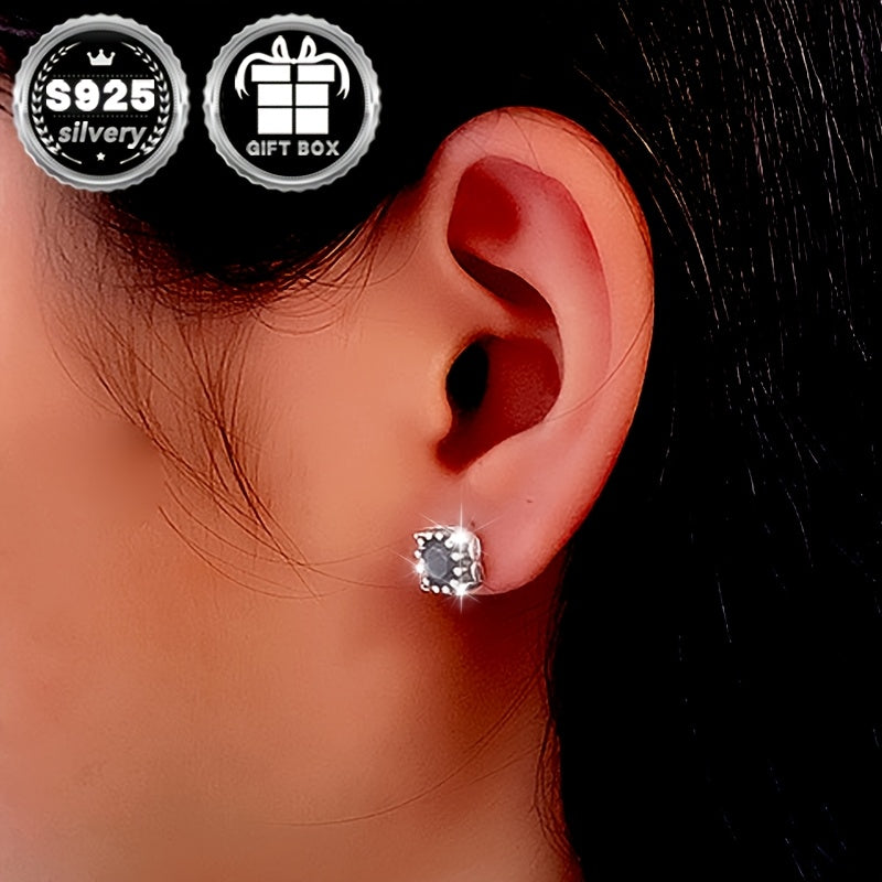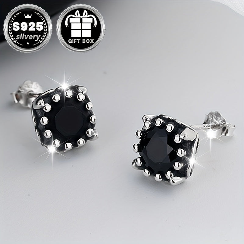 These elegant earrings feature a square zirconia design in a retro style. Made of pure silver, they are hypoallergenic and perfect for sensitive ears.