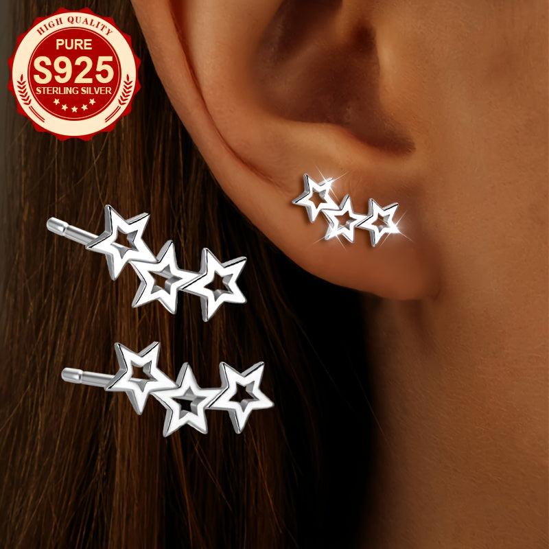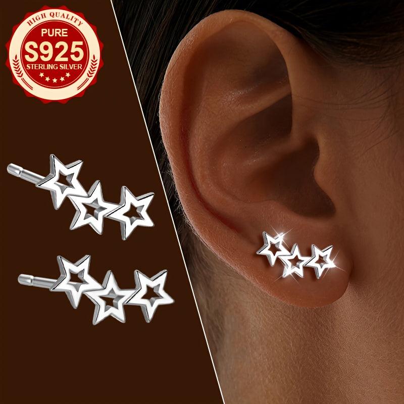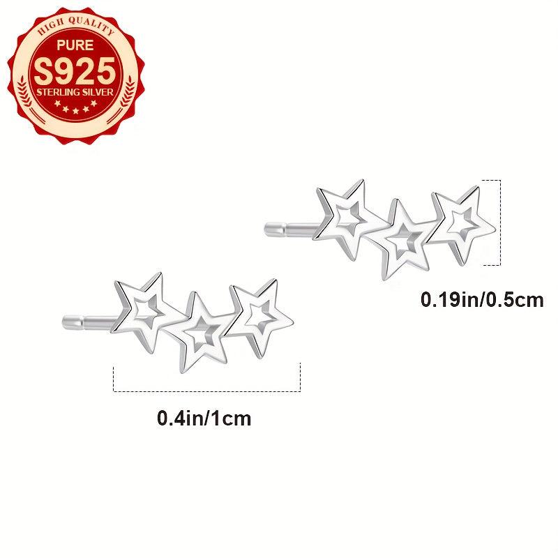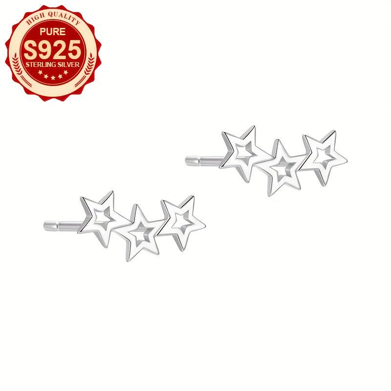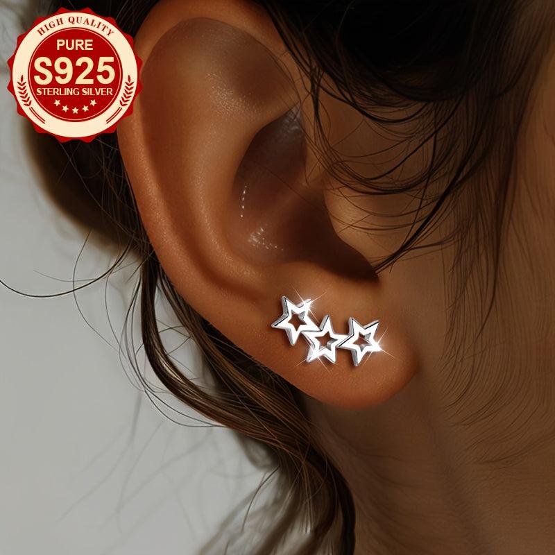 Charming S925 silver hollow star stud earrings, perfect for daily wear. Make a heartfelt gift for women. Fashionable and sweet design.