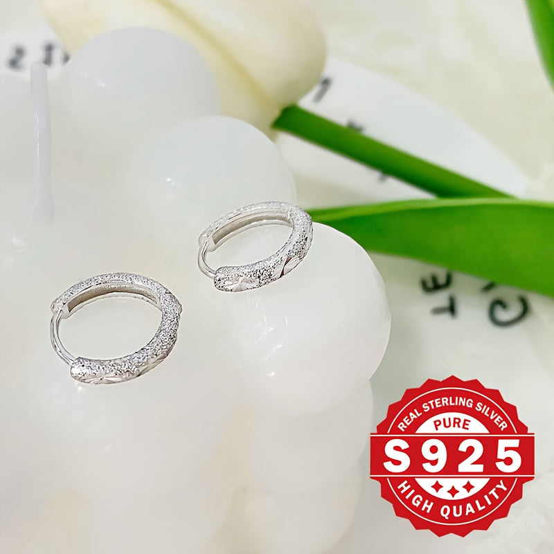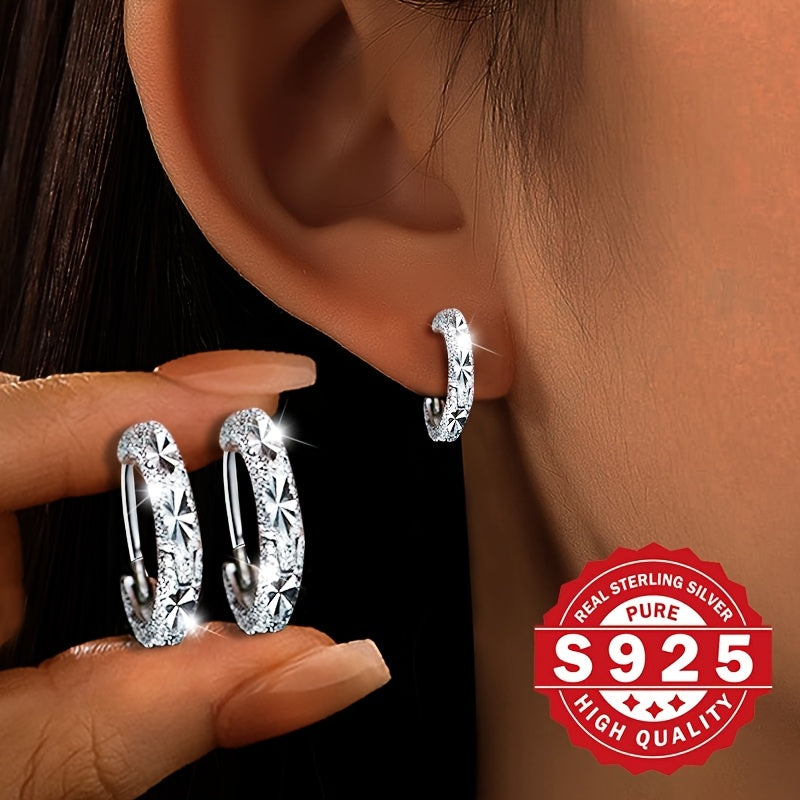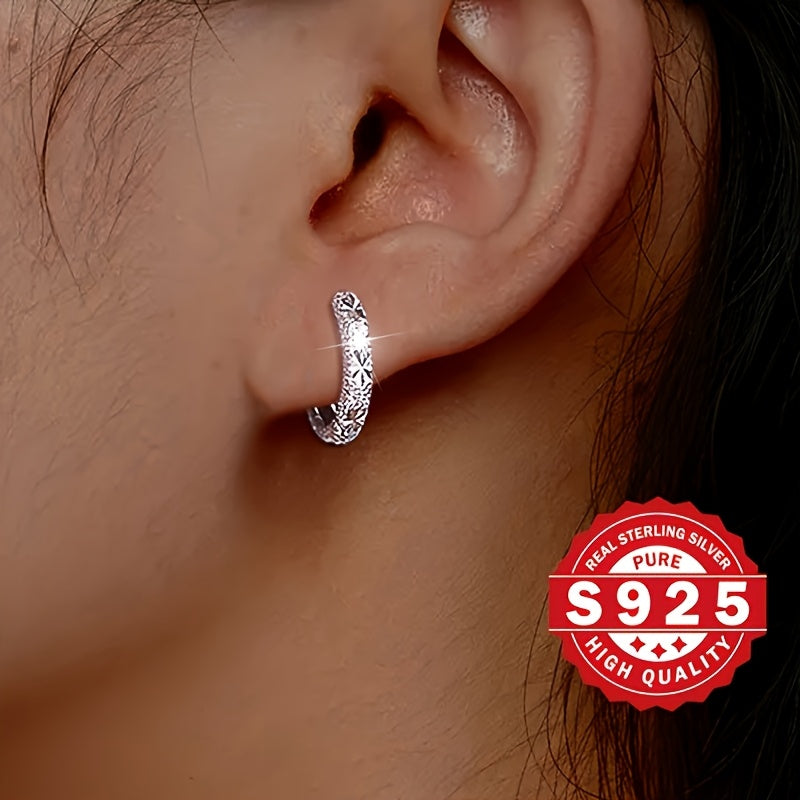 Add a touch of elegance to your look with these unique matte hoop earrings made of pure S925 silver. Featuring starry sky pattern and engraved flowers, these earrings are both stylish and elegant.