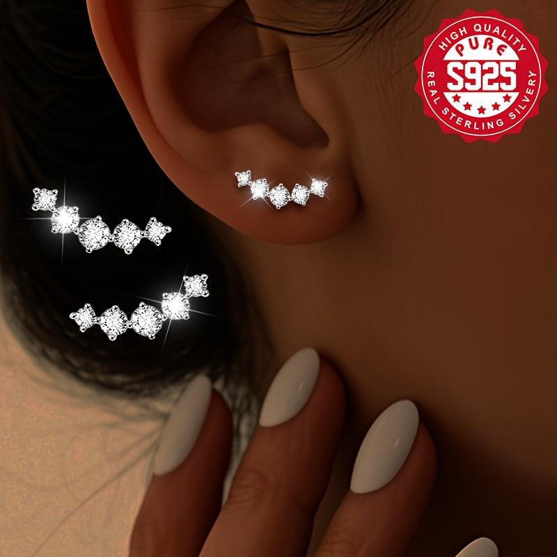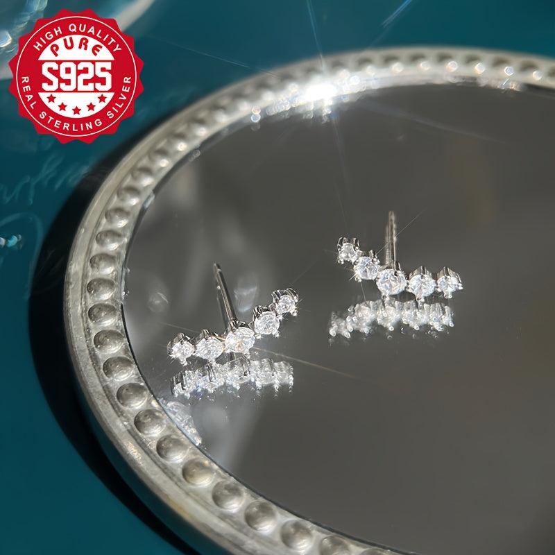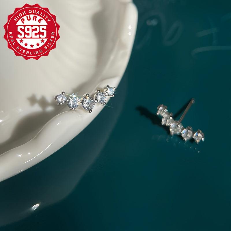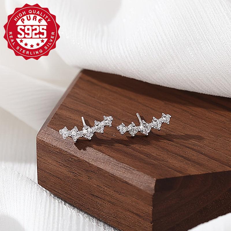 Elegant and versatile, these S925 silver earrings feature five synthetic zirconia stones. Perfect for daily wear, they add a touch of blingbling to any outfit.