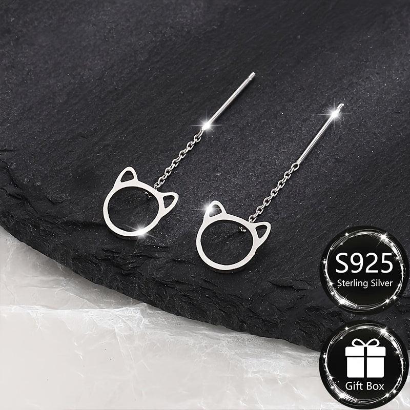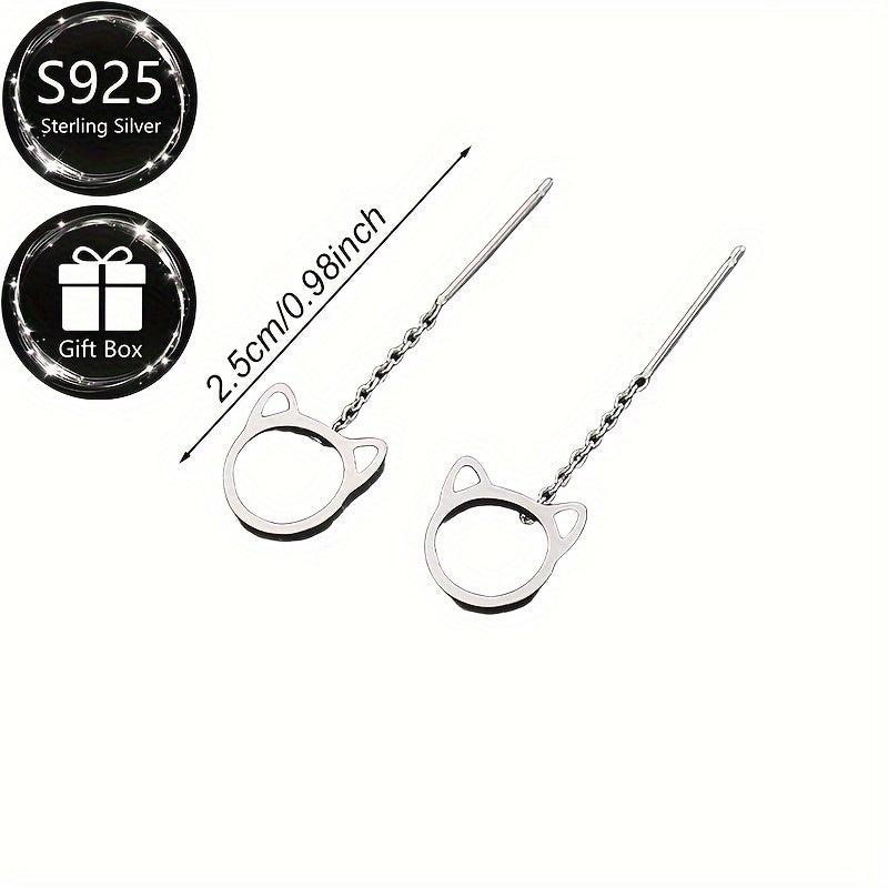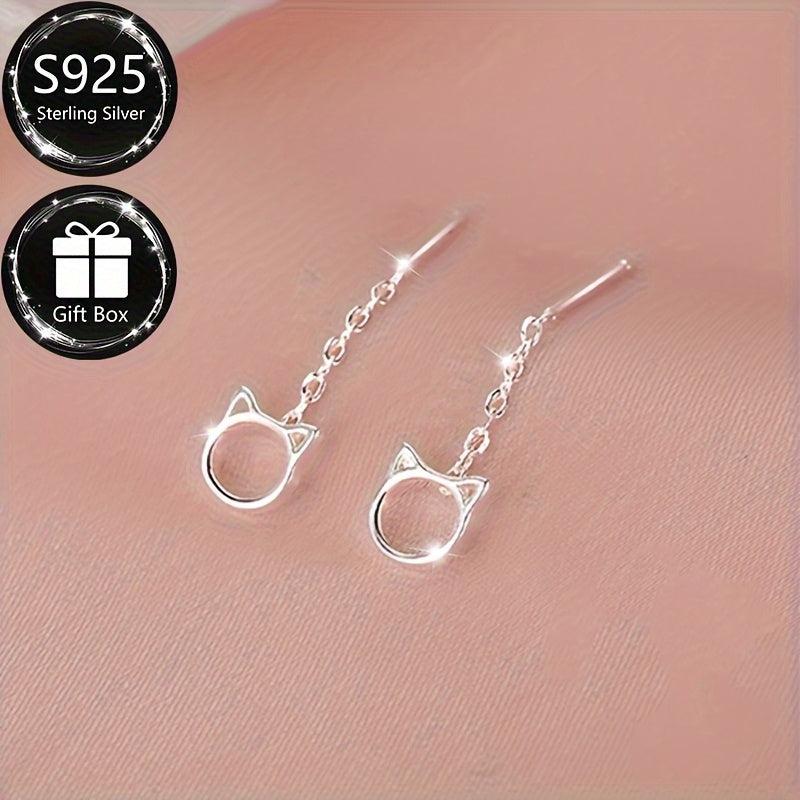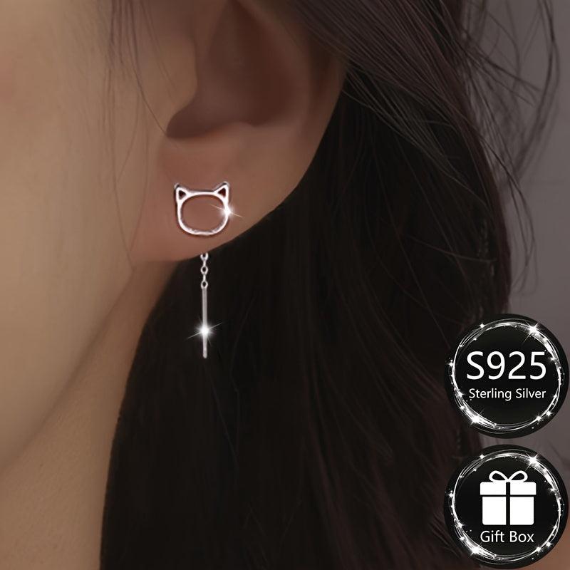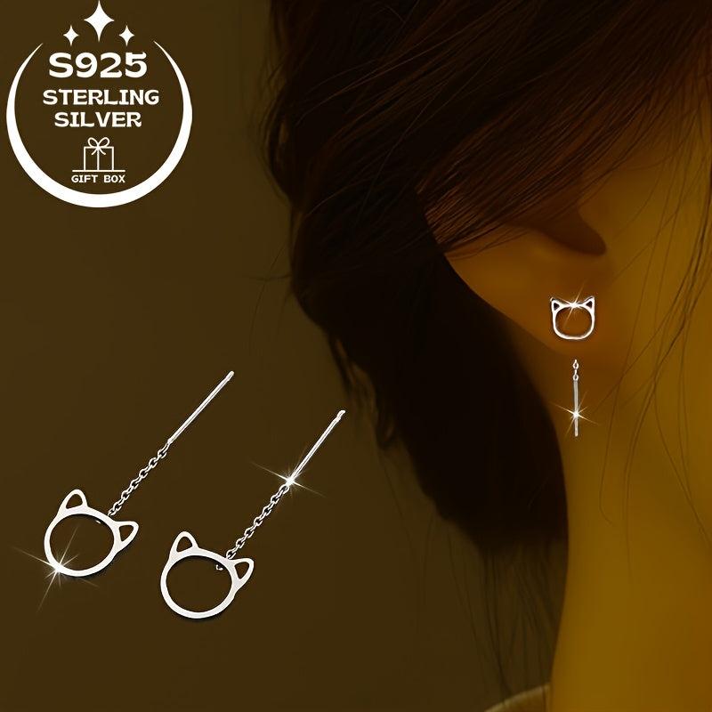 Adorable pair of S925 pure silvery cat earrings that are perfect for daily wear. These playful and small earrings are anti-allergic and comfortable to wear.