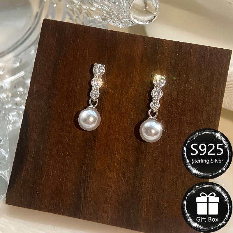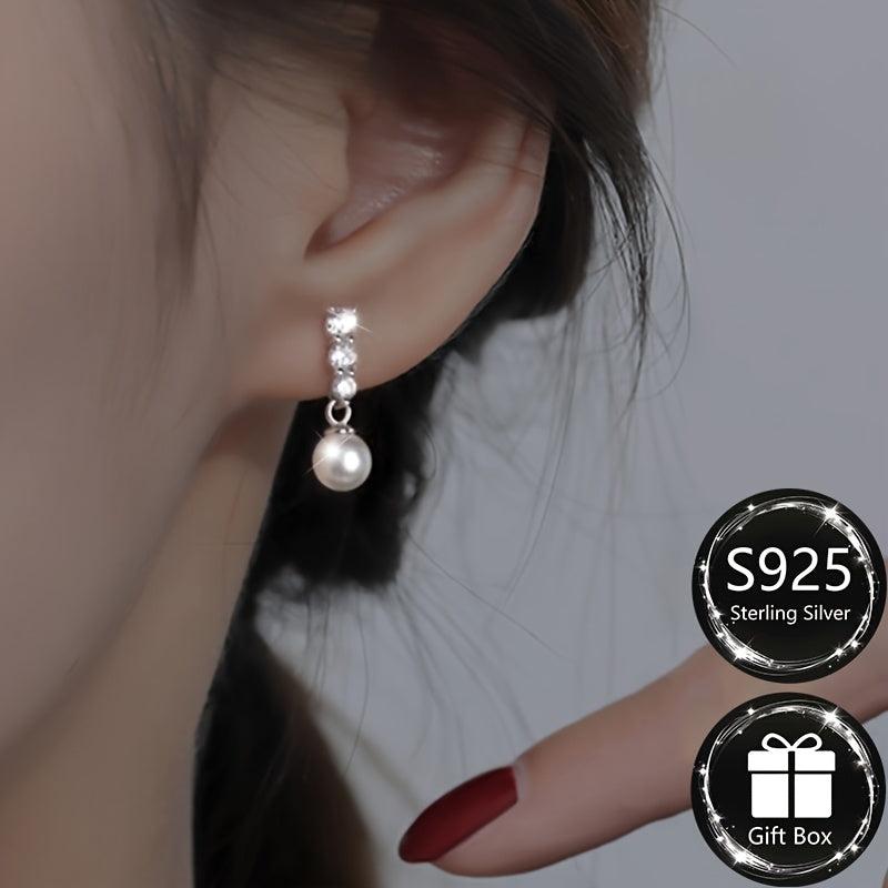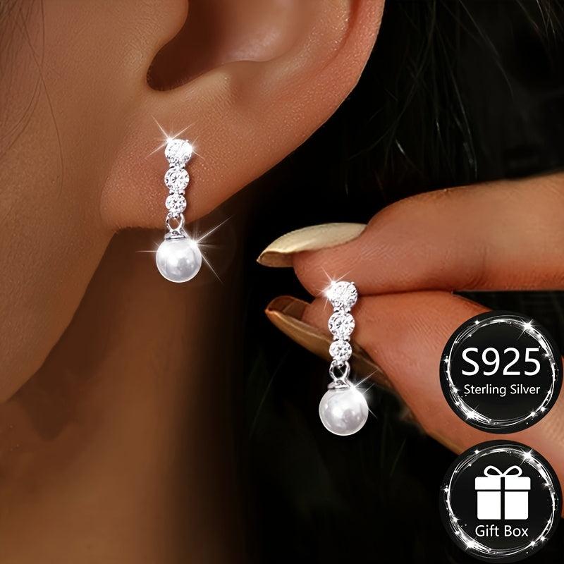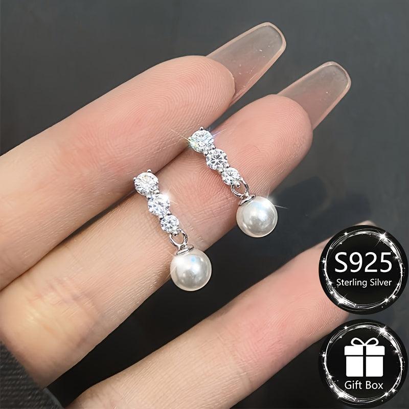 S925 Silvery Women's Zirconia Earrings, Low Allergy, Gift for Women