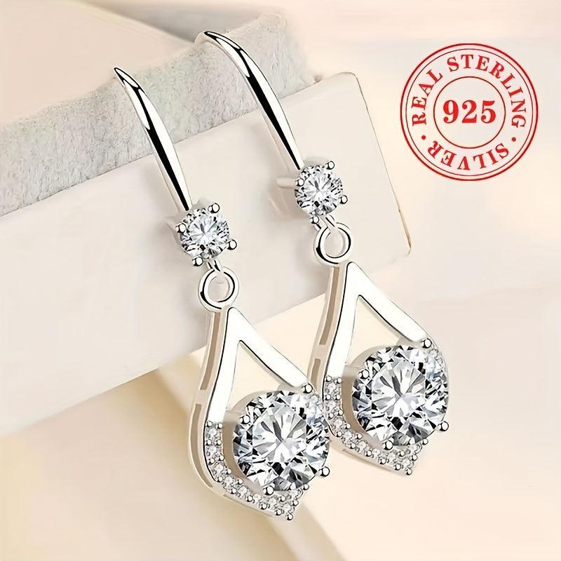 These elegant earrings feature synthetic zirconia stones set in pure silvery S925. Perfect for weddings, engagements, or everyday wear.