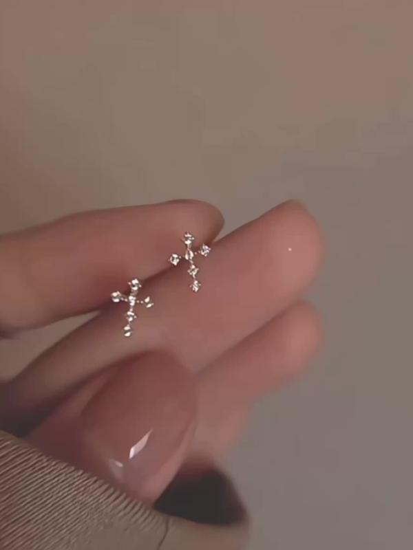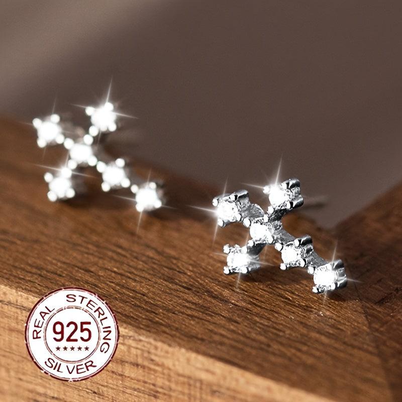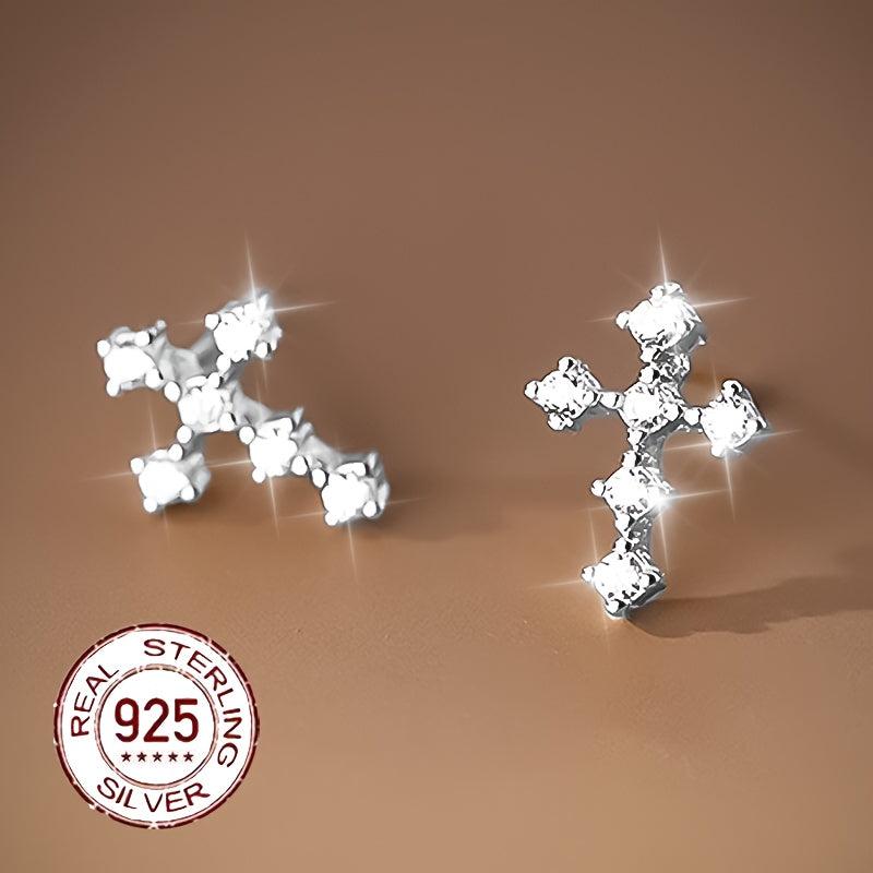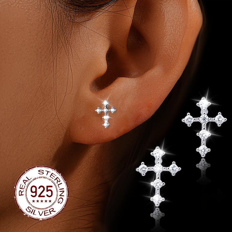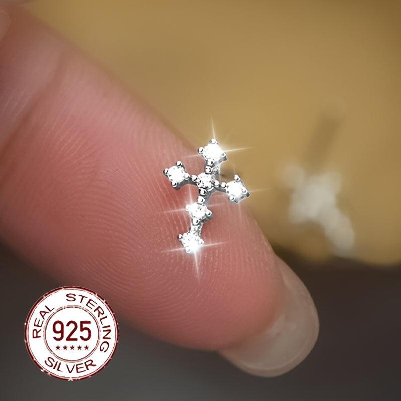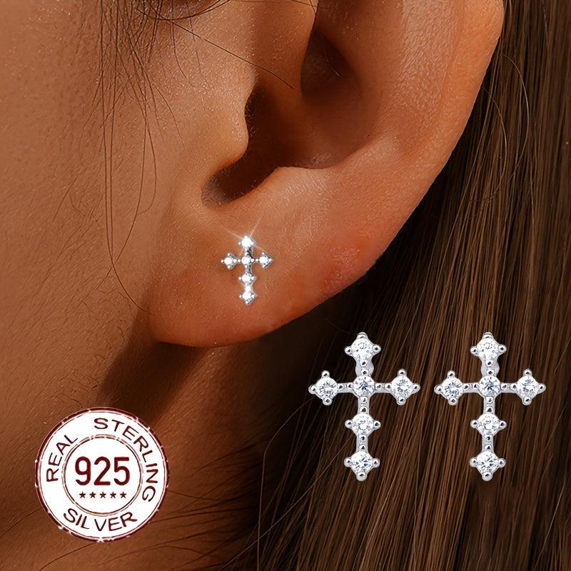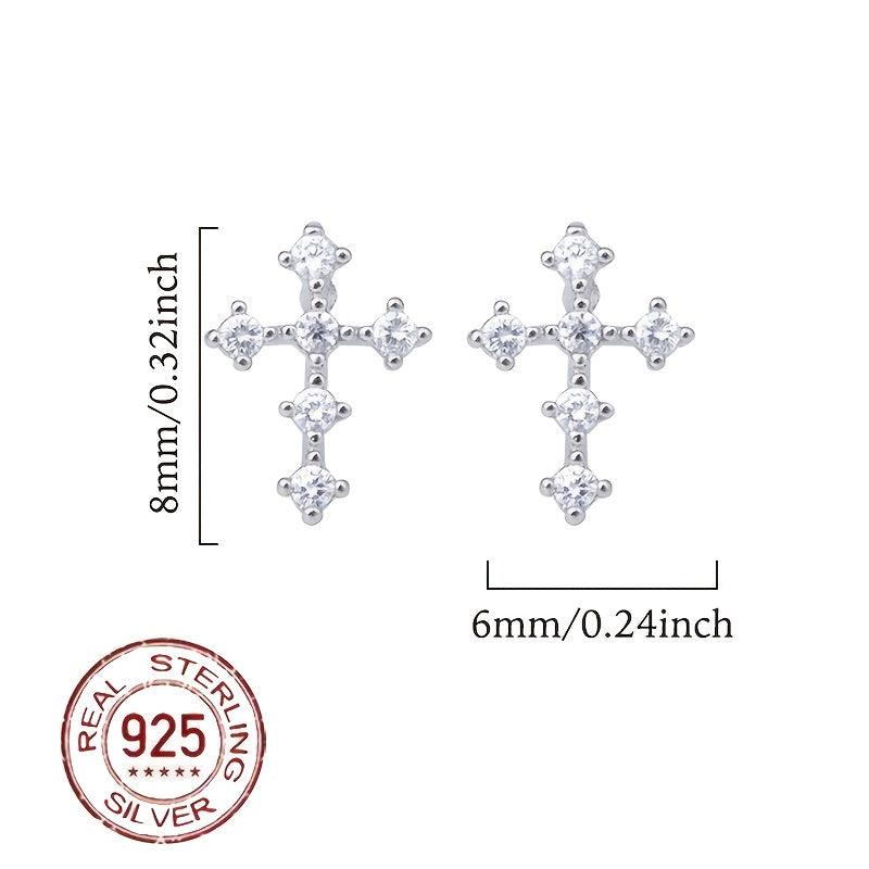 These mini sterling silver earrings feature synthetic zirconia crosses. They are versatile and perfect for casual attire, a gift, or a vacation accessory.
