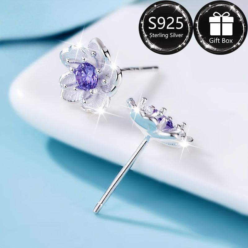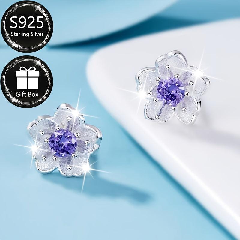 Add a touch of elegance with these hypoallergenic sterling silver earrings featuring a sexy flower design and inlaid synthetic zirconia. Perfect for daily wear or special occasions.