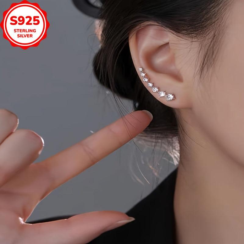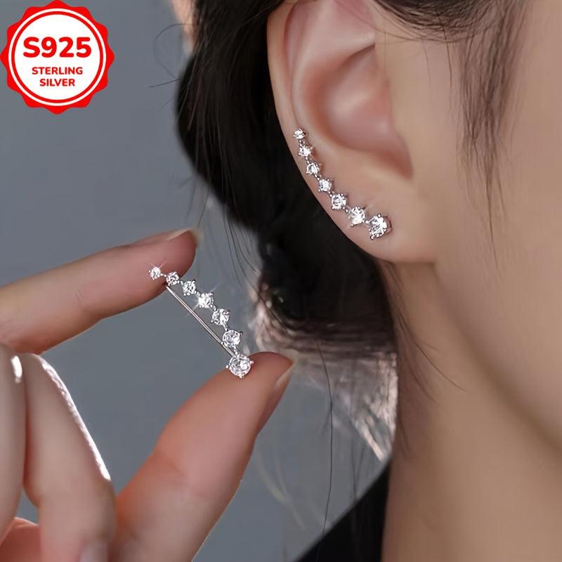 These S925 sterling silver stud earrings feature sparkling simulated diamonds, making them hypoallergenic and versatile for daily wear or special occasions. They are the perfect gift for couples or friends.