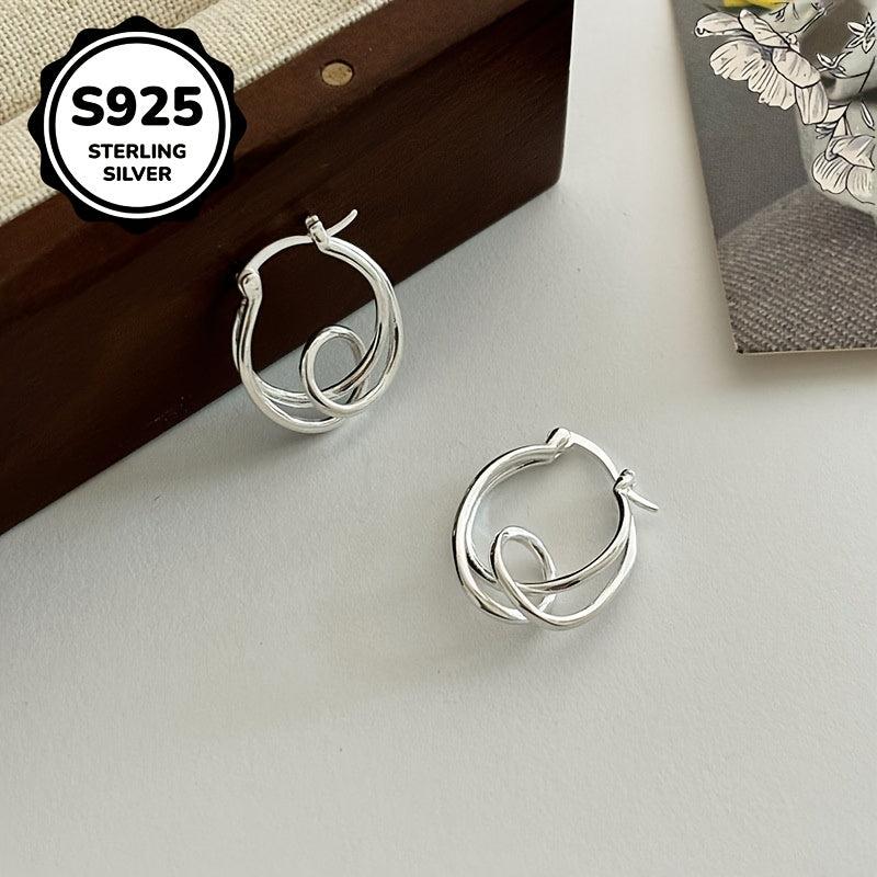 These elegant hoop earrings are made of high-quality S925 sterling silver, featuring a unique twist curve design inspired by Japanese aesthetics. They are hypoallergenic and safe for sensitive ears.