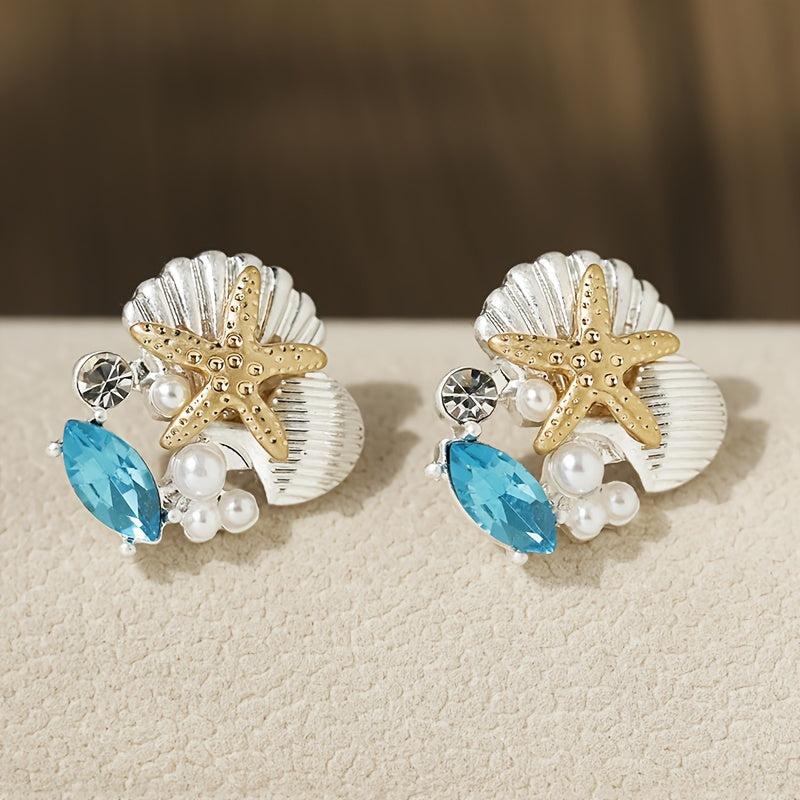 Adorn your ears with these versatile glass gemstone earrings featuring a starfish design, reminiscent of ocean treasures.