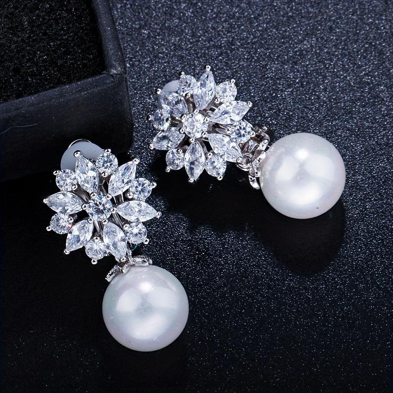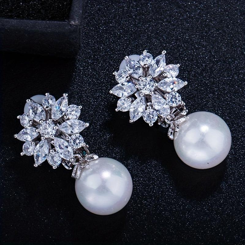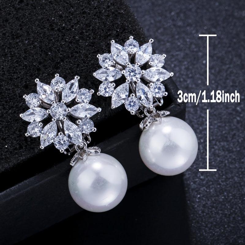 Add a touch of elegance to your look with these stunning clip-on earrings featuring synthetic zirconia and faux pearl drops. The perfect accessory for any occasion.