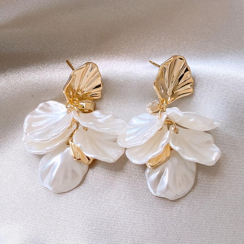 These delicate zinc alloy earrings feature elegant shell leaf design with rhinestones. Suitable for daily wear and special occasions.