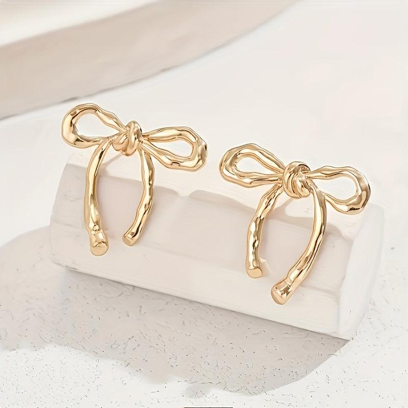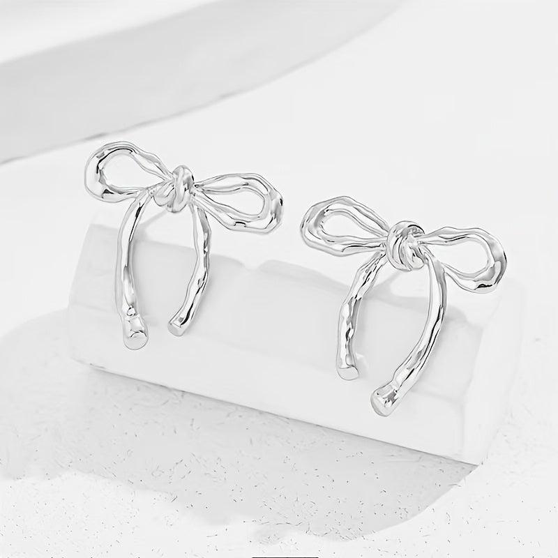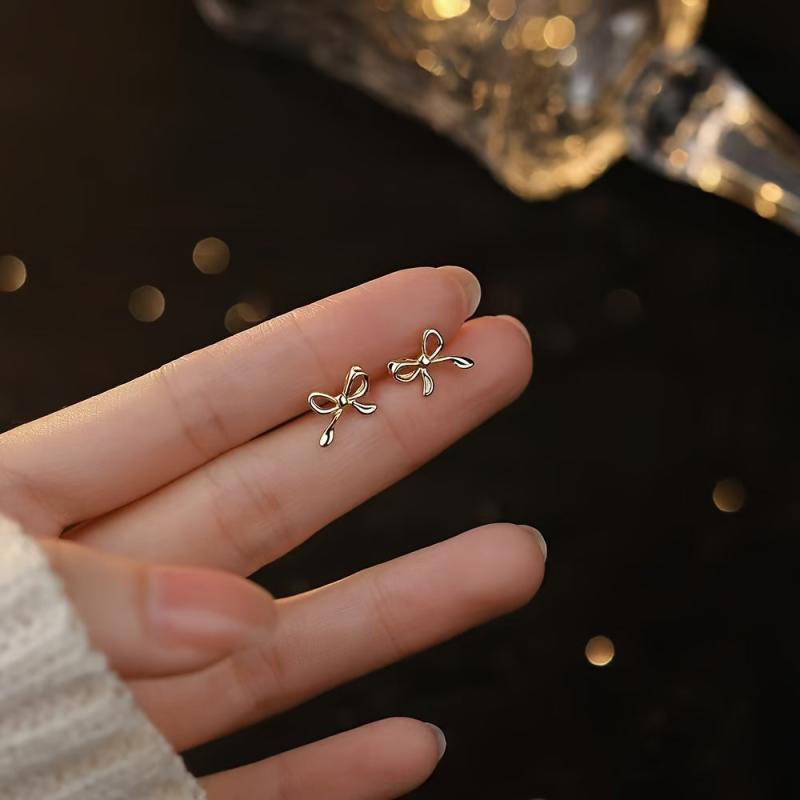 Add a touch of elegance to your everyday look with these silvery golden bow earrings. The INS style design exudes a sense of sophistication and charm, perfect for any occasion.