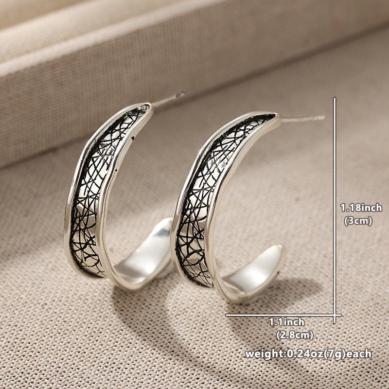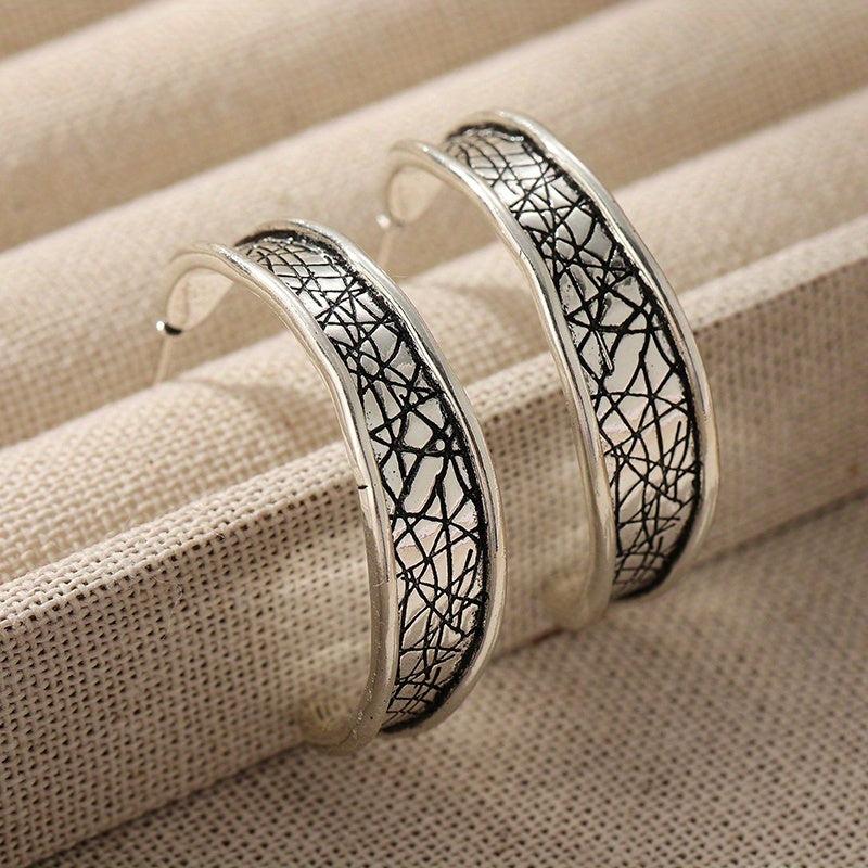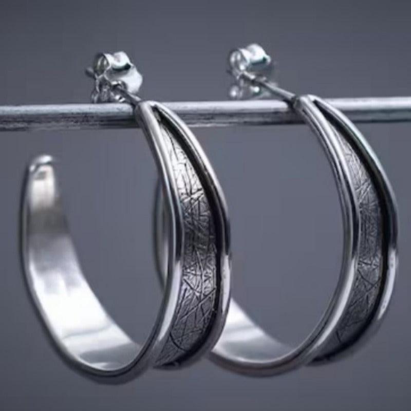 Vintage silvery hammered hoop earrings with durable matte finish. Perfect for daily stacking and hypoallergenic wear.