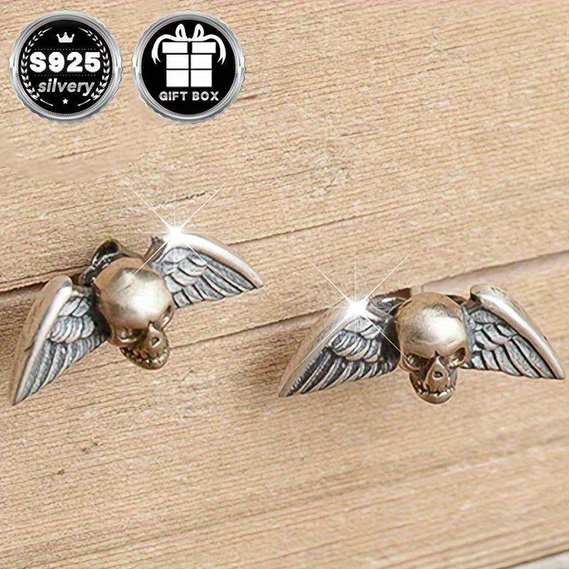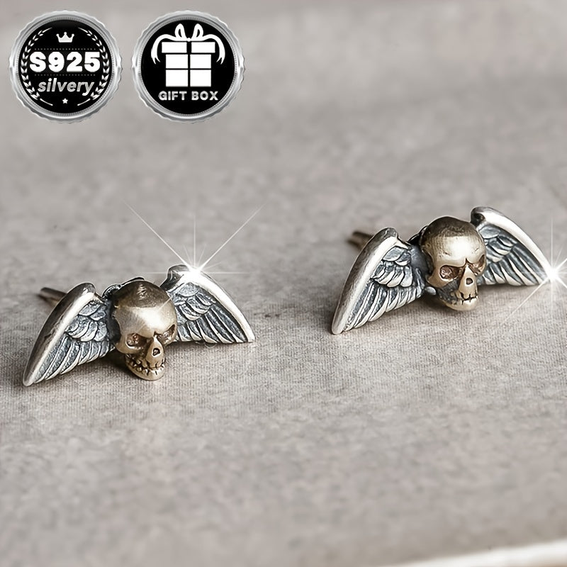 These earrings are made of pure silvery material, weighing about 1g. They feature a retro gothic punk style perfect for Halloween parties or as a holiday gift.