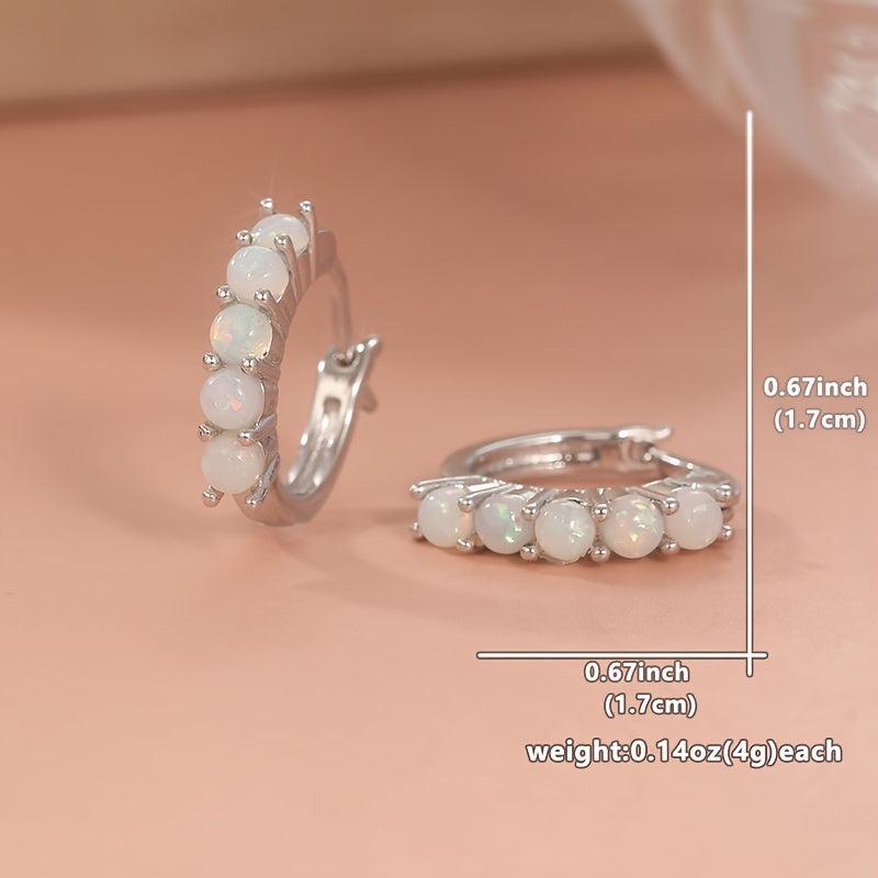 Add a touch of elegance to your look with these stunning hoop earrings featuring shimmering synthetic opal treasures.