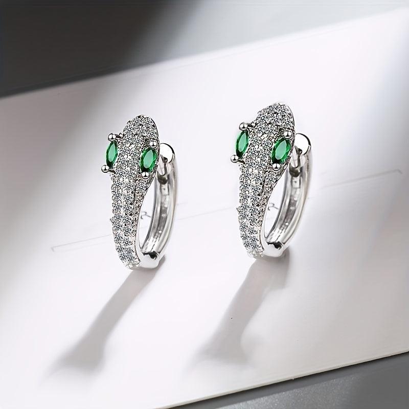 Add a touch of vintage elegance to your look with these snake shaped hoop earrings. Featuring green and clear synthetic gemstones, these earrings are ideal for daily wear and parties.