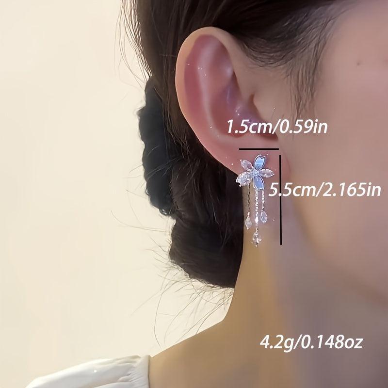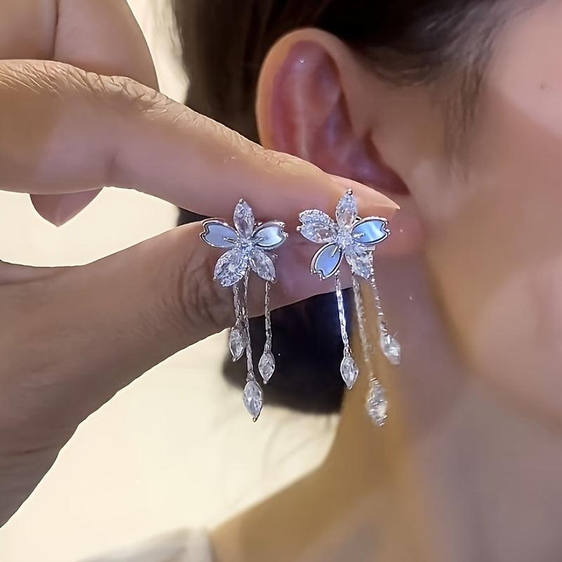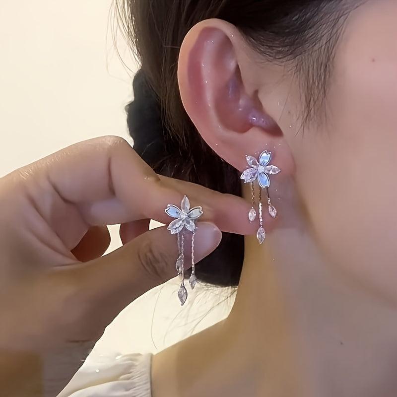 Add a touch of elegance with these versatile earrings that feature delicate flower studs and cascading tails. Perfect for casual attire or a special occasion, these earrings make a great gift for women.