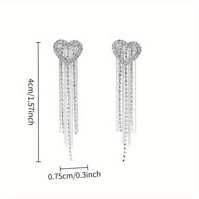 These elegant heart dangle earrings feature a long tassel design with sparkling rhinestones, plated in a luxurious golden finish. A perfect gift for any occasion, these earrings are suitable for all seasons.