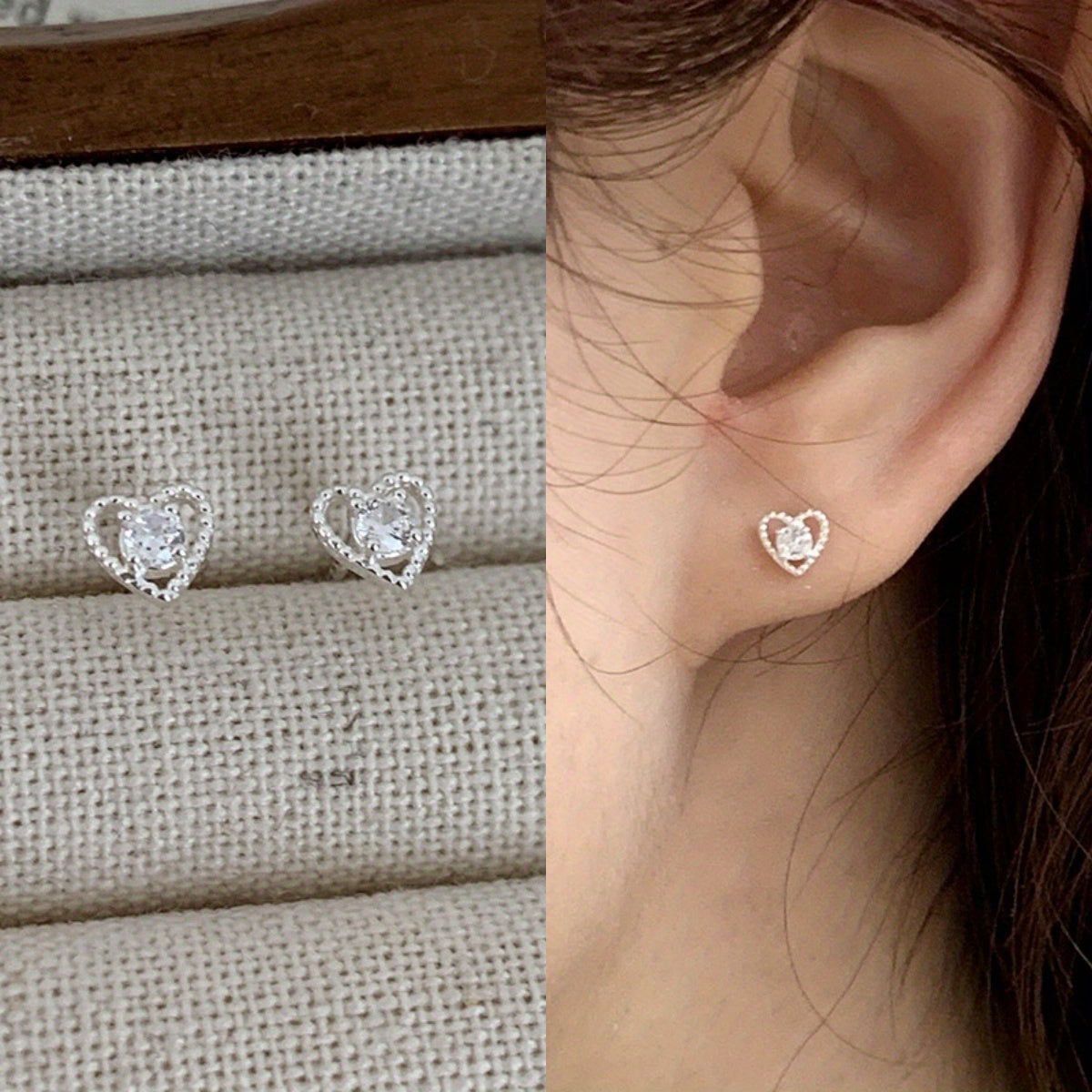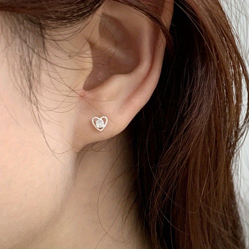 Dazzle in these stunning heart stud earrings featuring sparkling rhinestones. Perfect for everyday wear or special occasions.