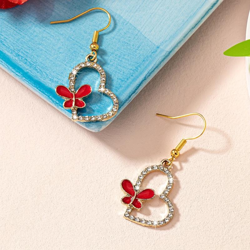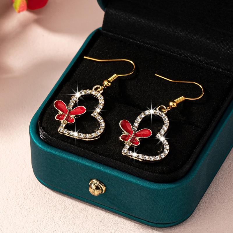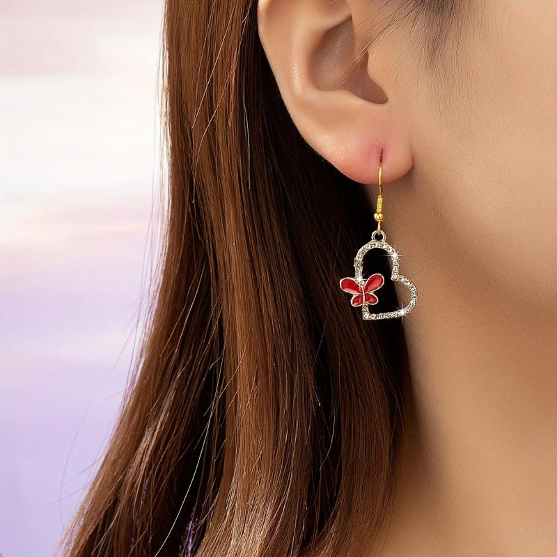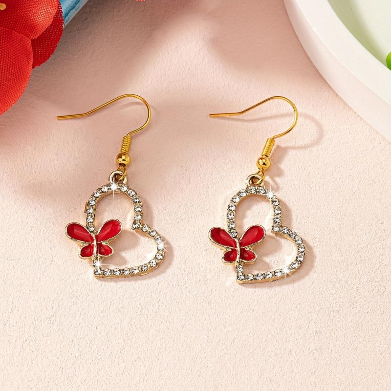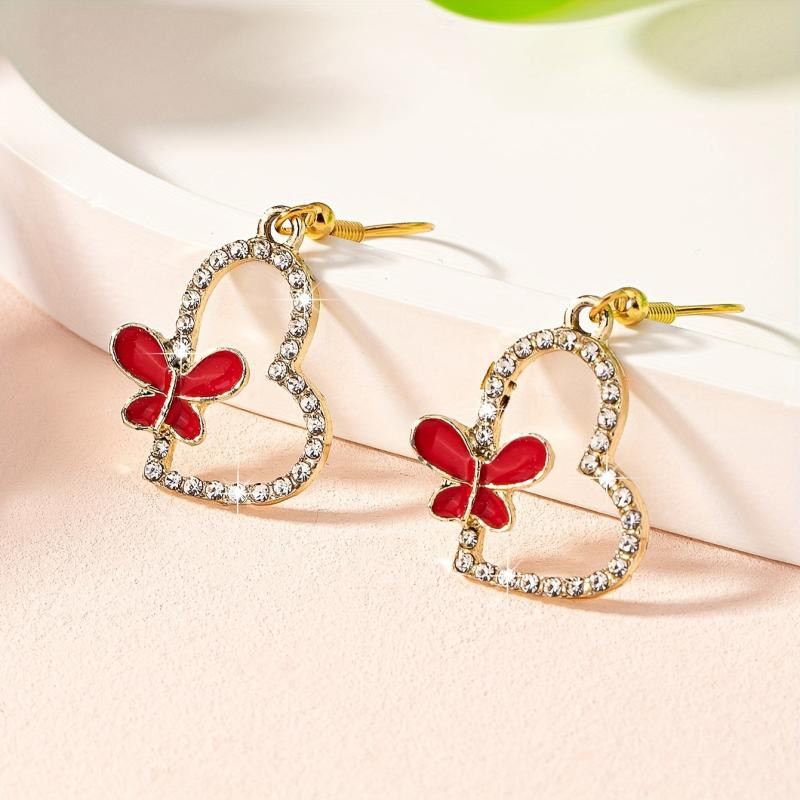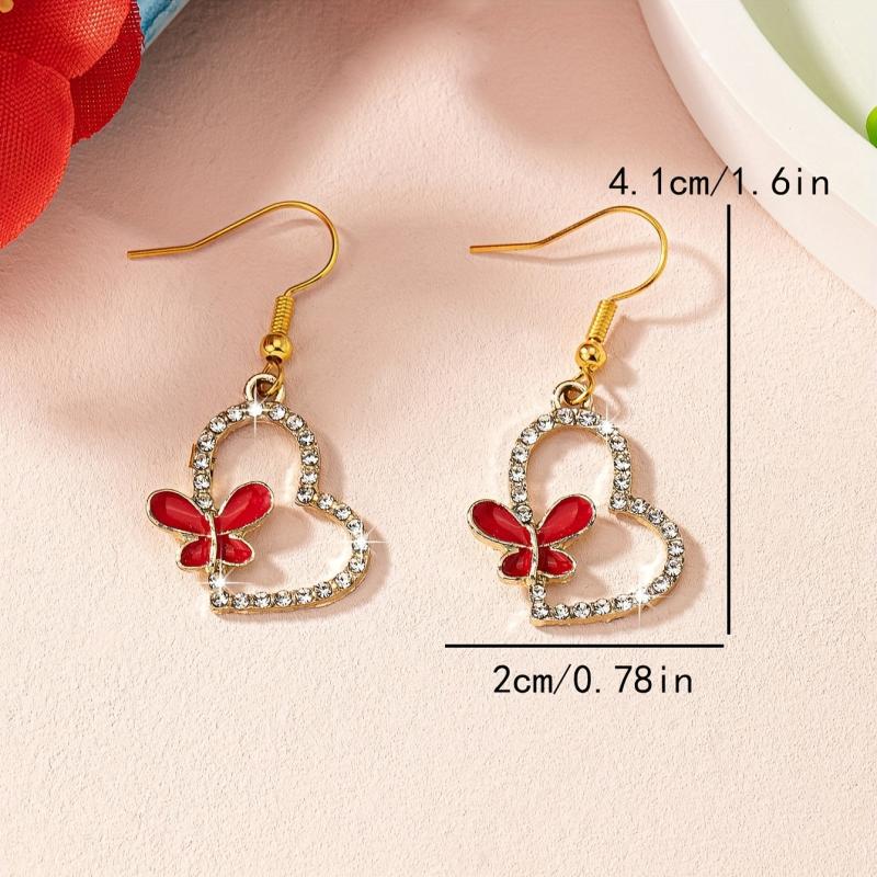 These 2pcs Sparkling Zinc Alloy Earrings feature a beautiful design with Glass Heart and Butterfly, making them perfect for daily wear, parties, and Valentine's Day. They are an ideal gift for her on Valentine's Day.