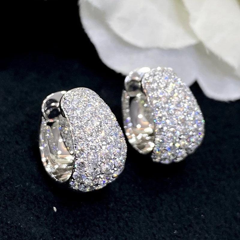 These minimalist hoop earrings feature synthetic zirconia stones set in golden plated copper, perfect for weddings, Christmas, and daily wear.