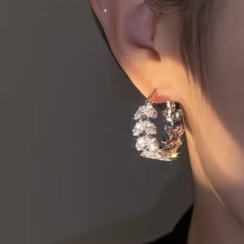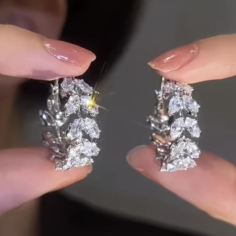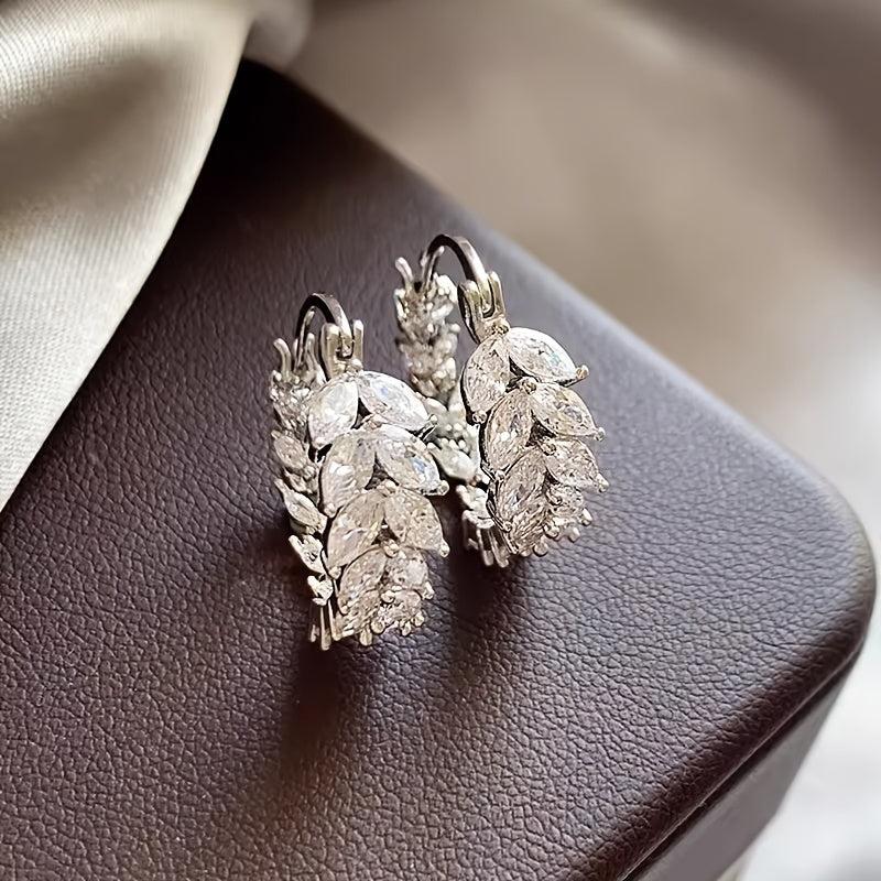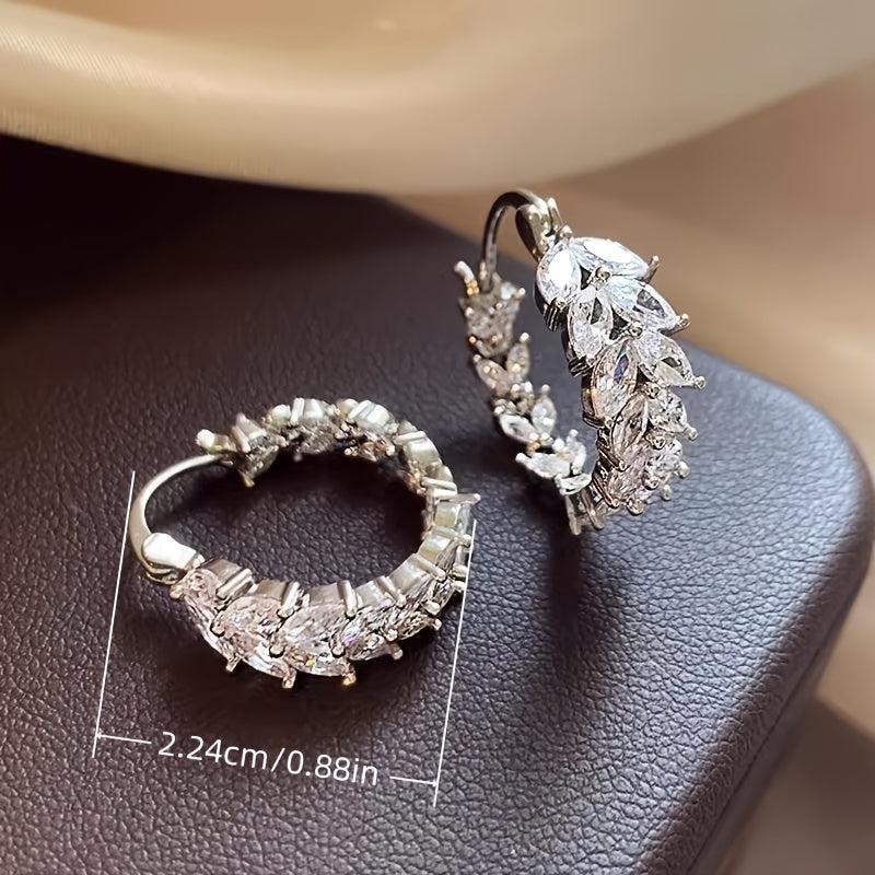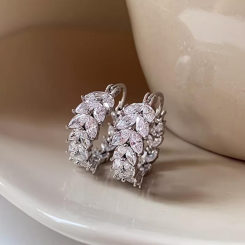 Elevate your look with these stunning hoop earrings featuring synthetic zirconia in a leaf design. Perfect for weddings, engagements, parties, and upscale casual jewelry.