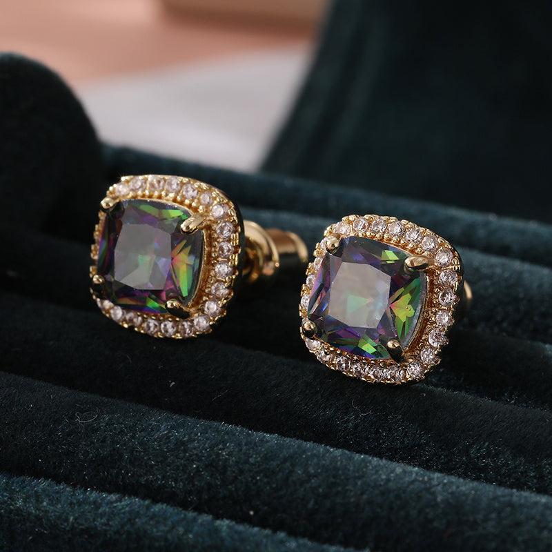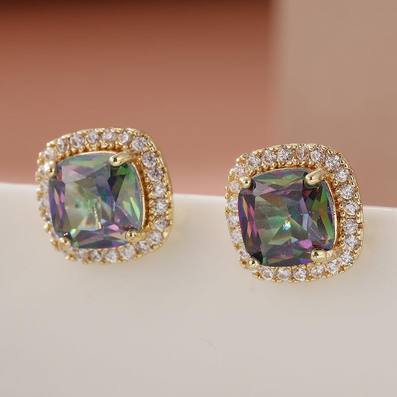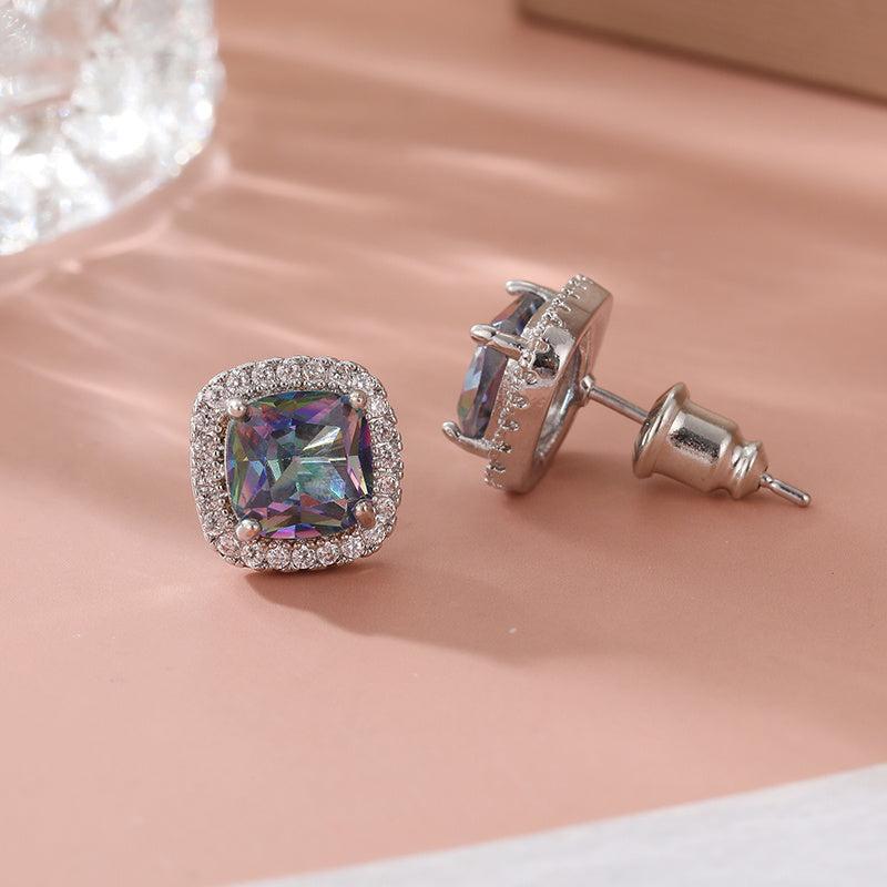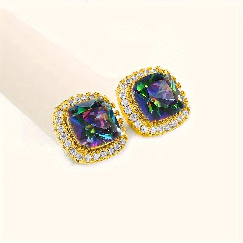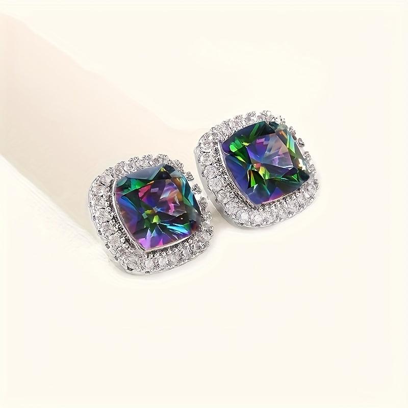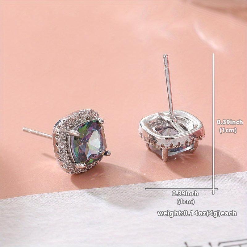 Stunning synthetic zirconia earrings featuring a square cut design with sparkling accents. Perfect gift for women, ideal for holiday parties and formal events.