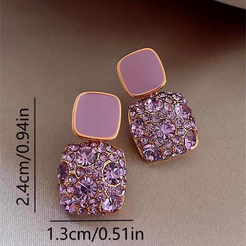 These exquisite earrings feature a square shape with full rhinestone decoration, making them perfect for banquets, parties, and special occasions.