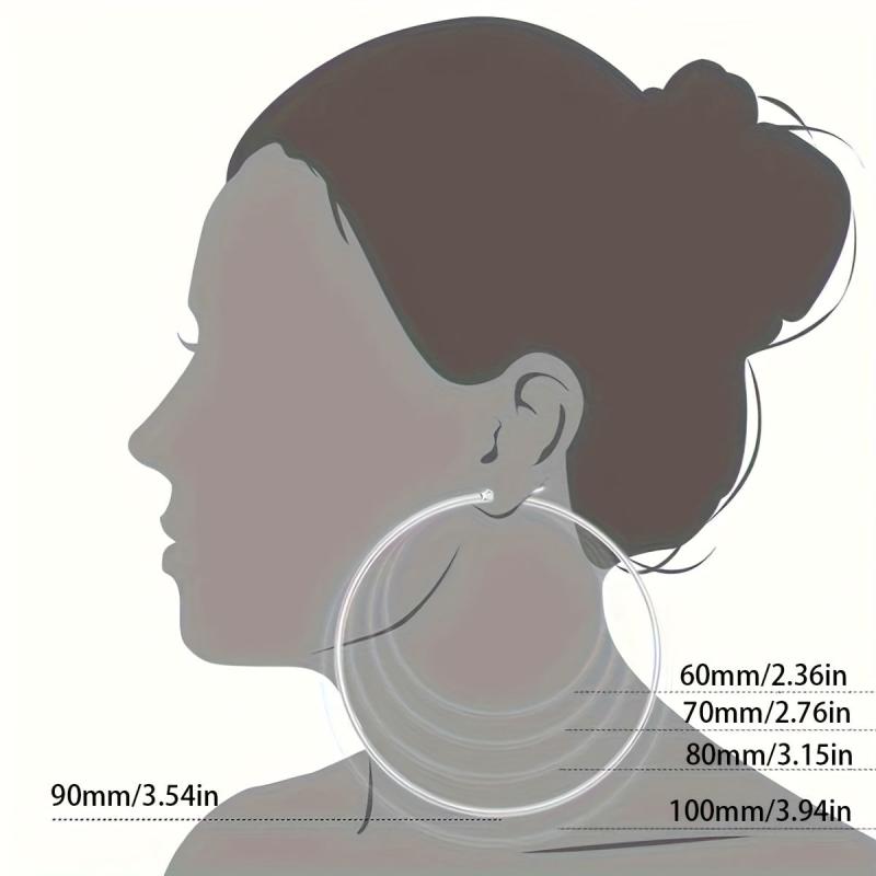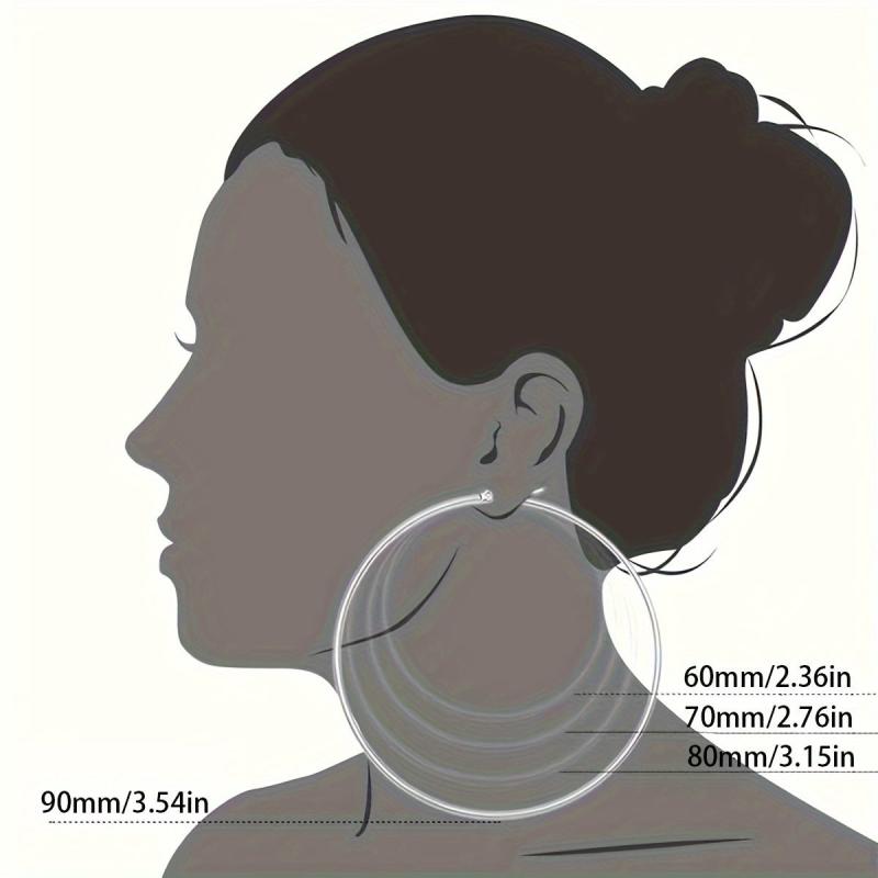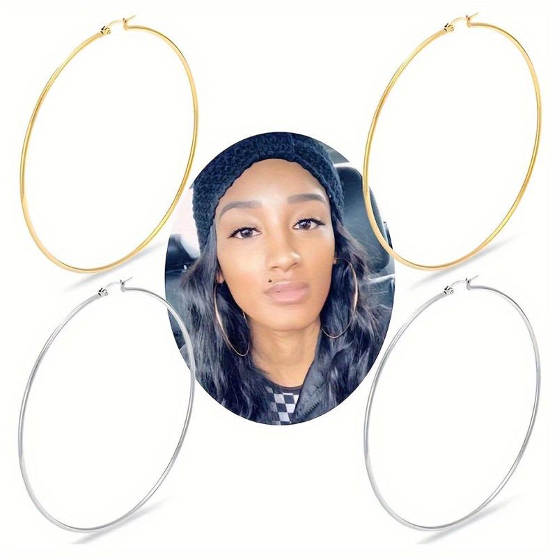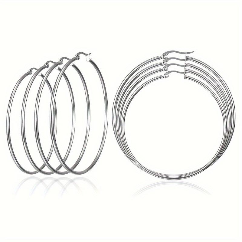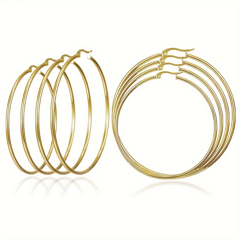 Add a touch of elegance to your outfit with this set of 4 large circle coil wire hoop earrings. Available in golden and silvery tones, these earrings are perfect for any occasion.
