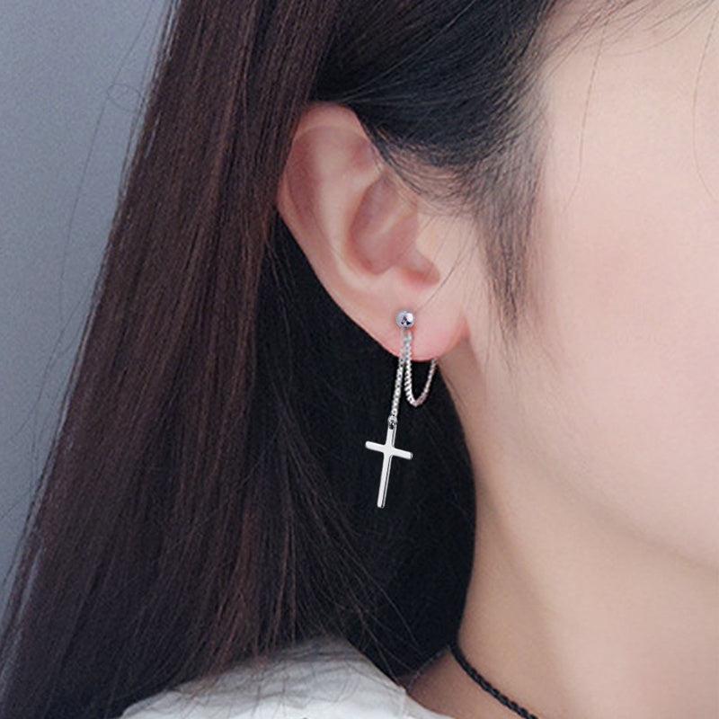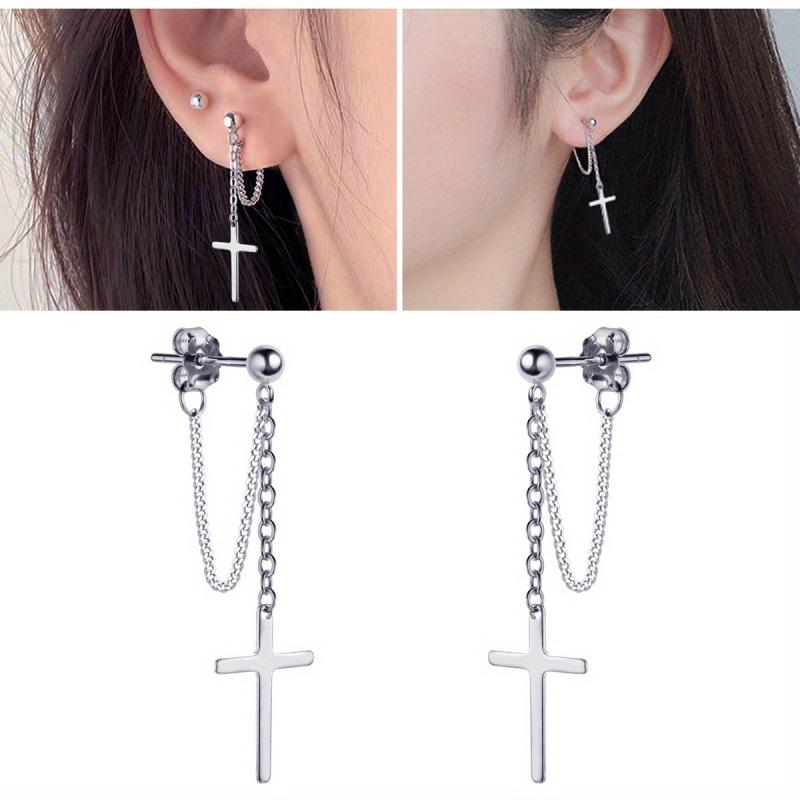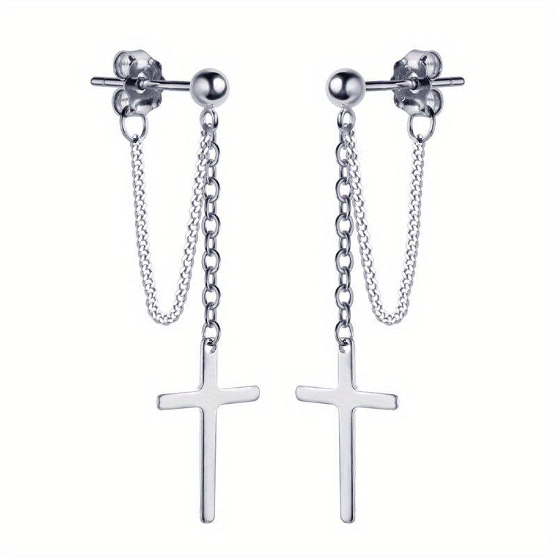 These hypoallergenic earrings feature a pair of stainless steel cross pendants. The unique design allows for front and back wearing, adding versatility to your style.