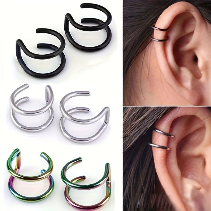 These stainless steel U-shaped ear clips are a fashionable alternative to traditional earrings. The double loop design adds a unique touch to your look without the need for piercing. They can be worn as ear pendants or lip rings for versatile styling.