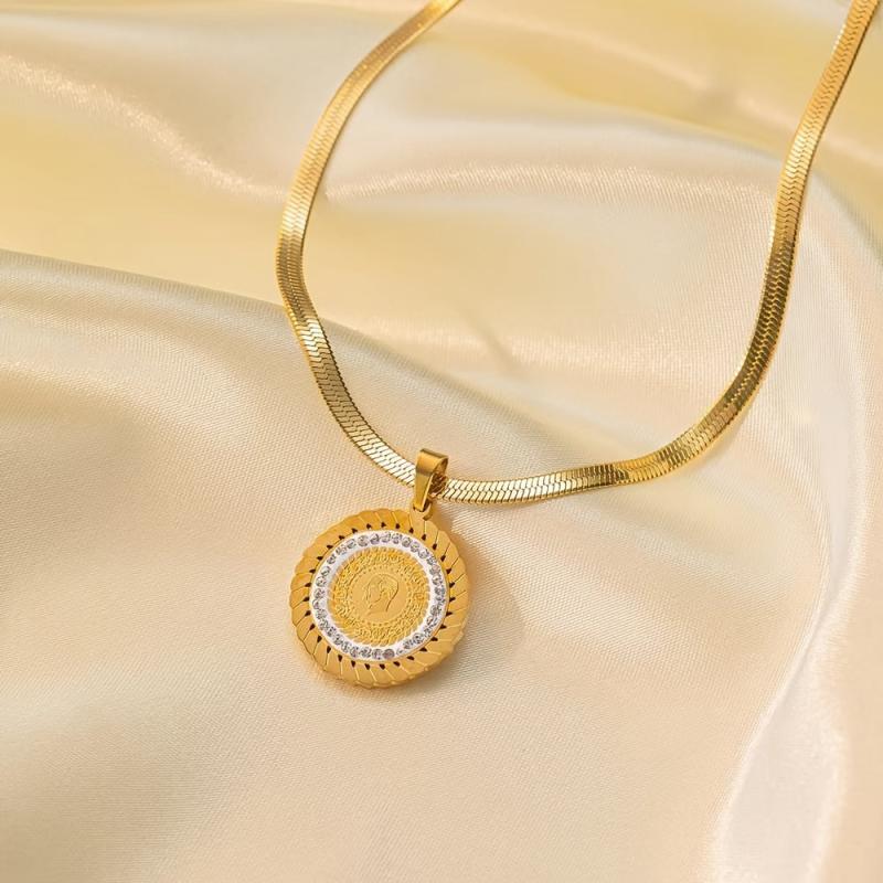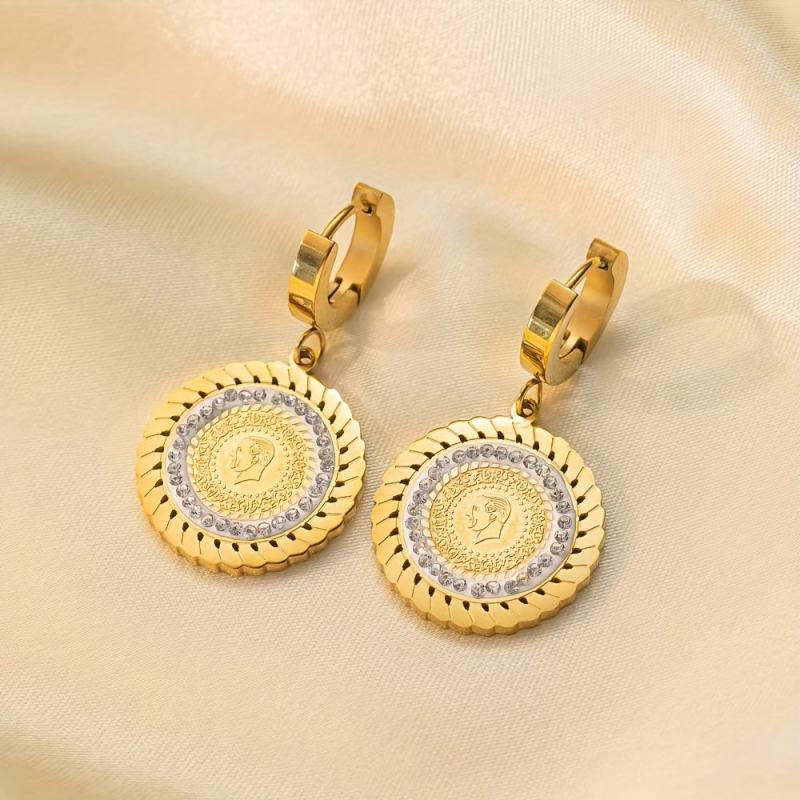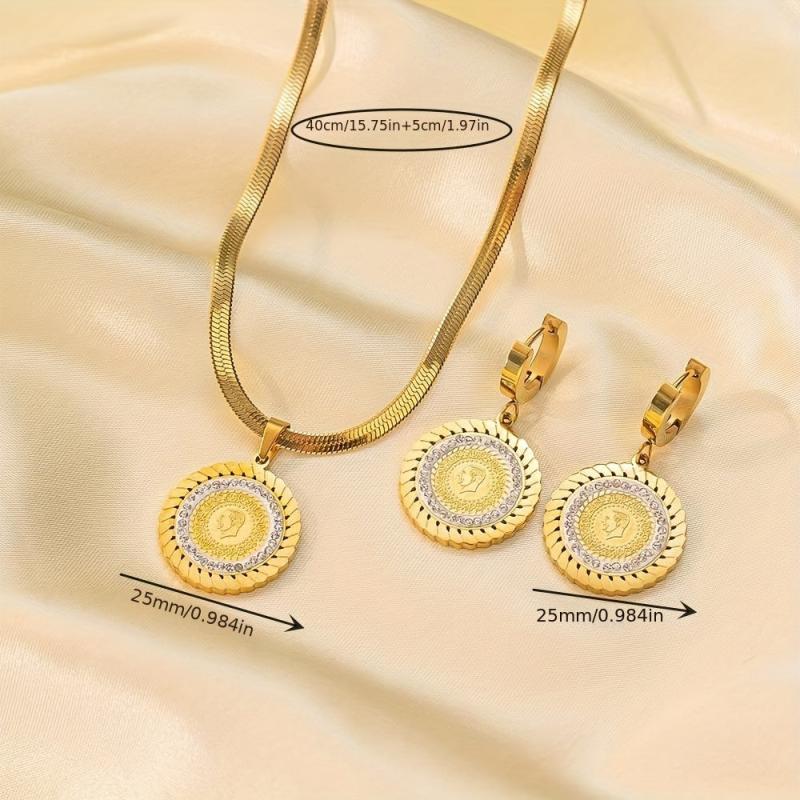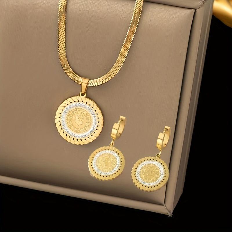 Discover this vintage-inspired stainless steel pendant and earring set featuring a low-allergy tone finish. Perfect for those with sensitive skin.