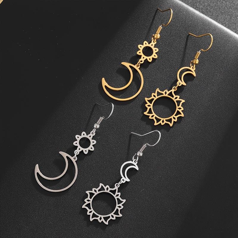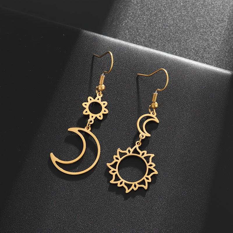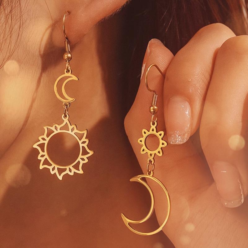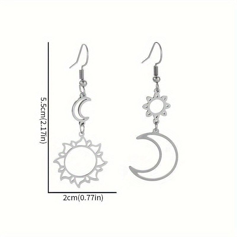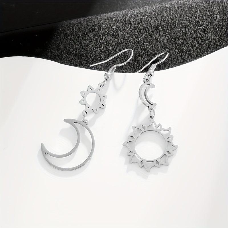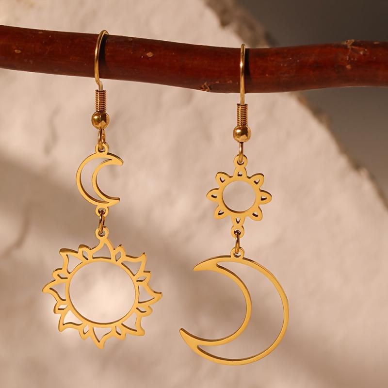 These asymmetrical drop earrings feature a hollow sun and moon design, perfect for daily wear or special occasions. The minimalist celestial style adds a touch of elegance to any outfit, making them a versatile accessory for any jewelry collection. They also make a perfect gift for someone special.