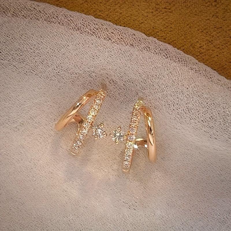 These stylish earrings are a perfect birthday gift. The set includes a pair of stainless steel cut texture earrings with a fashionable double layer claw inlaid artificial crystal.