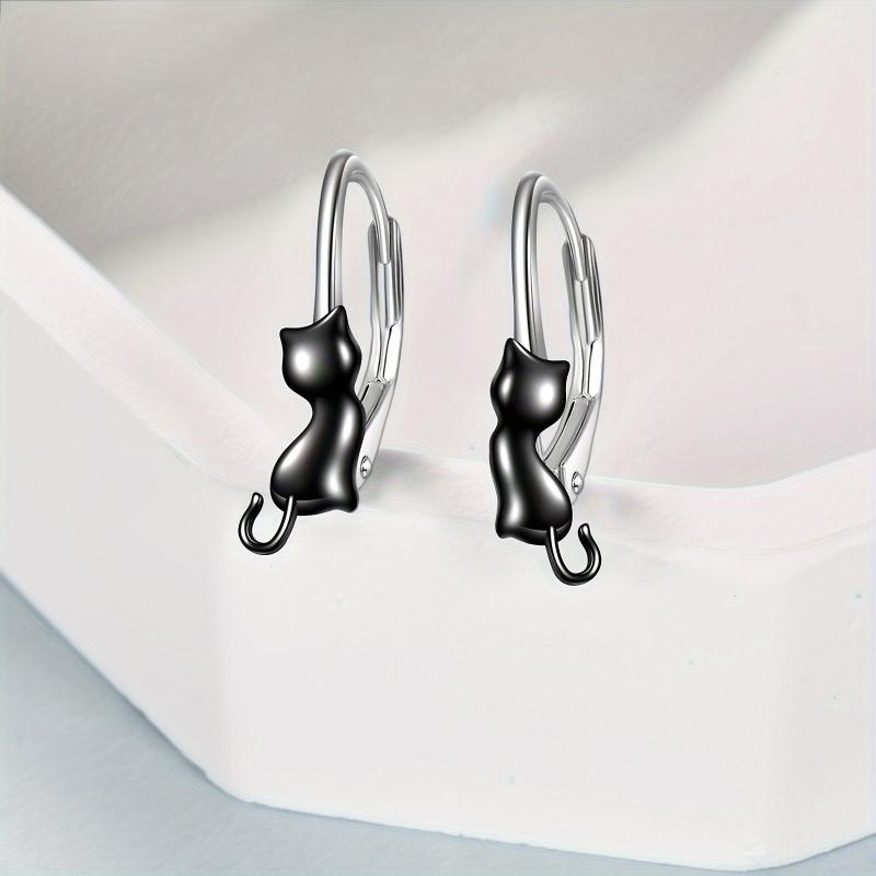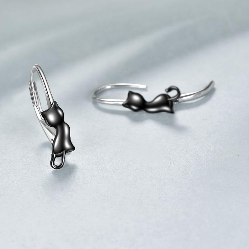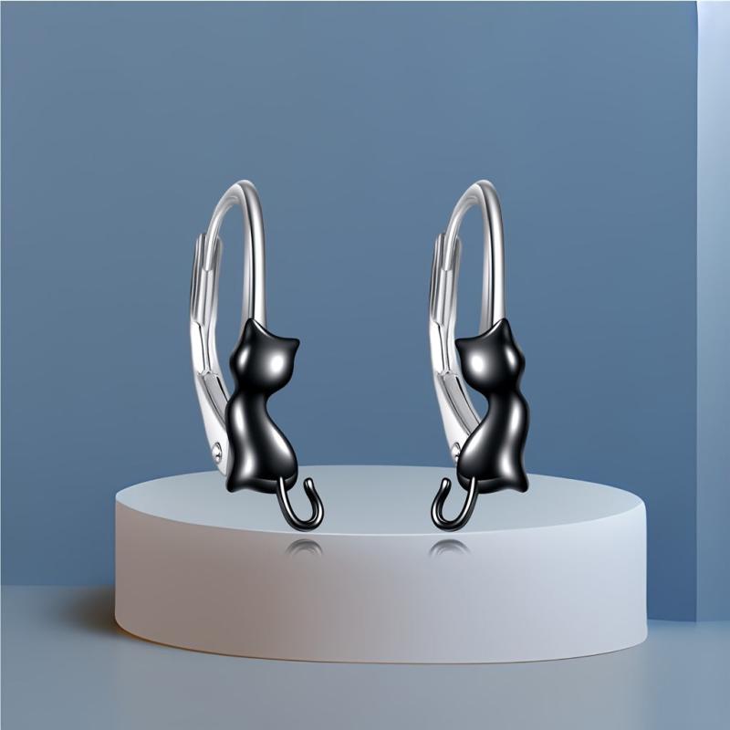 These adorable cat earrings are made of sterling silver and feature a trendy hoop dangle design. Perfect for any cat lover!