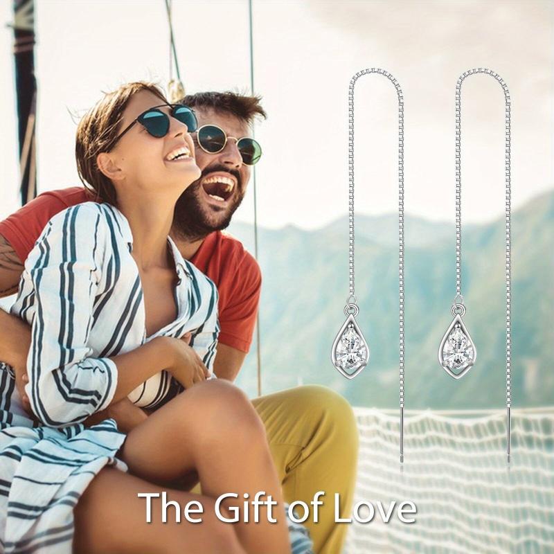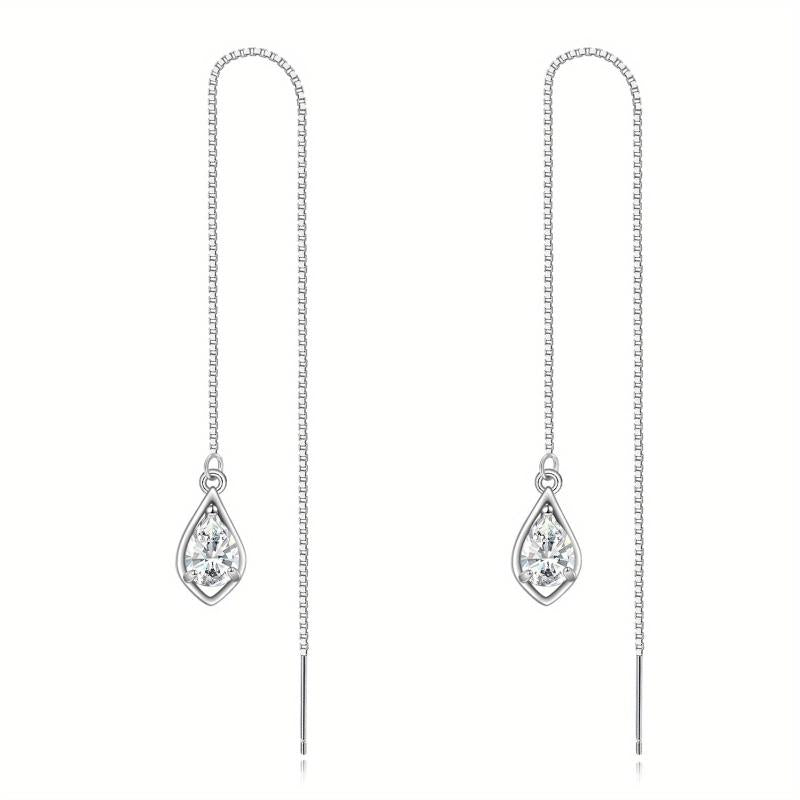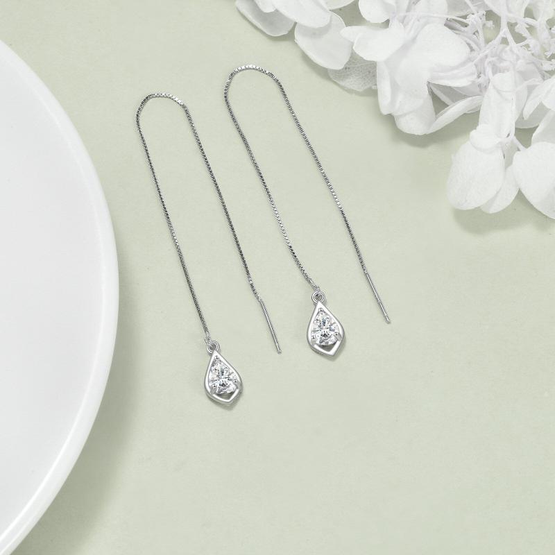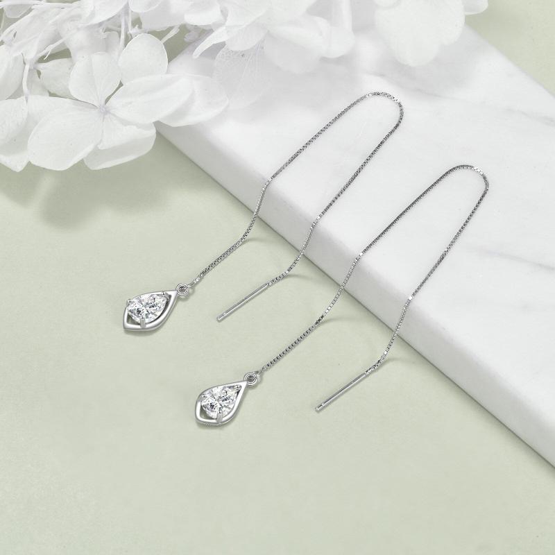 These elegant threader earrings feature teardrop CZ droplets for a stylish look. Made of high-quality 925 sterling silver, these dangle earrings are perfect for women and girls.