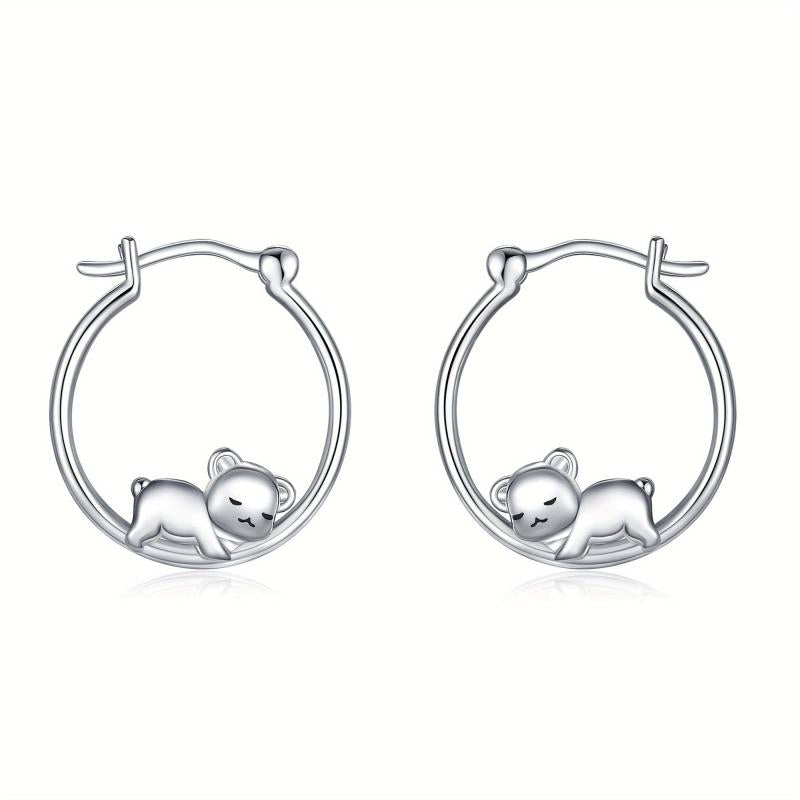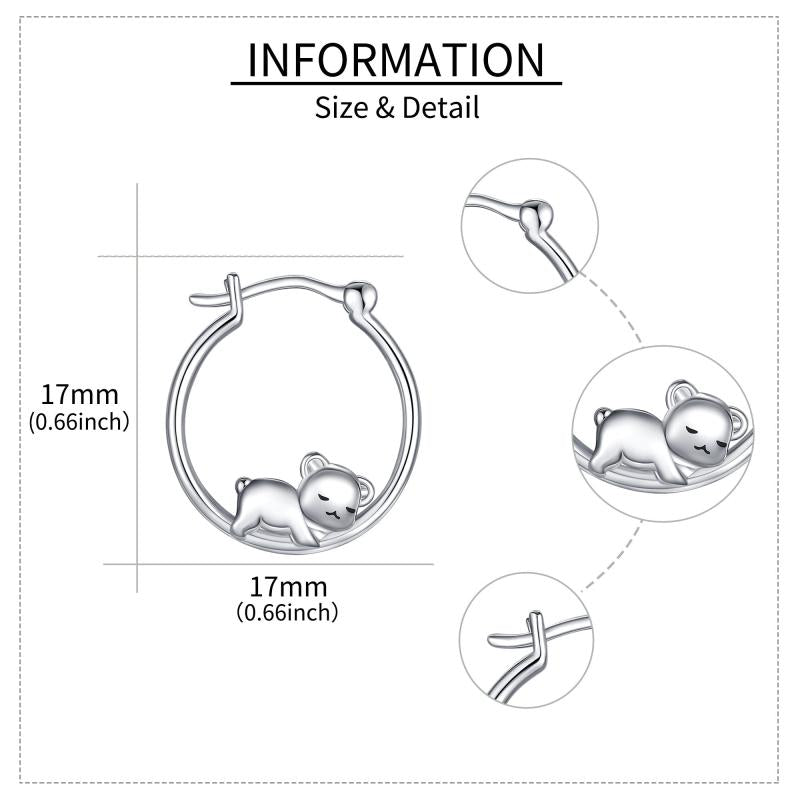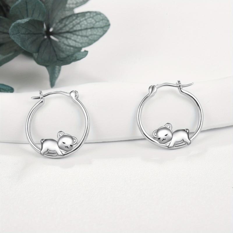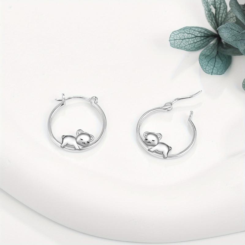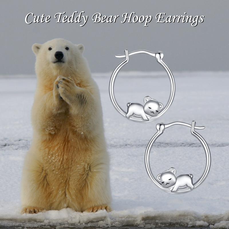 Adorable sterling silver hoop earrings featuring teddy bear design. Perfect for animal lovers and bear enthusiasts.
