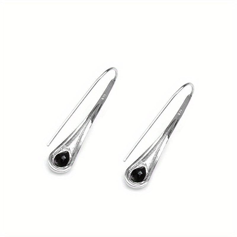 Elevate your casual attire with these vintage-inspired stone drop earrings featuring teardrop copper hooks and synthetic zirconia accents.